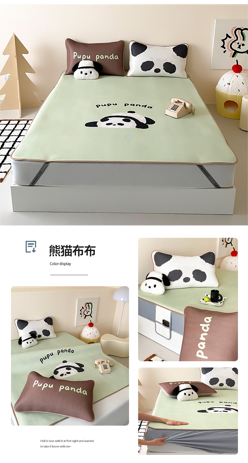 商品名称:三味舒屋 2025新款熊猫系列大版印花冰丝冰藤席凉席 熊猫布布-床笠款