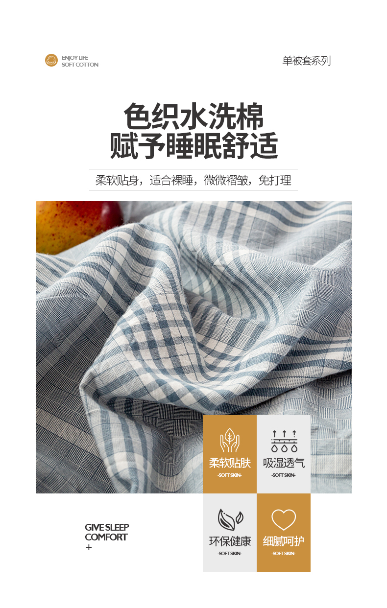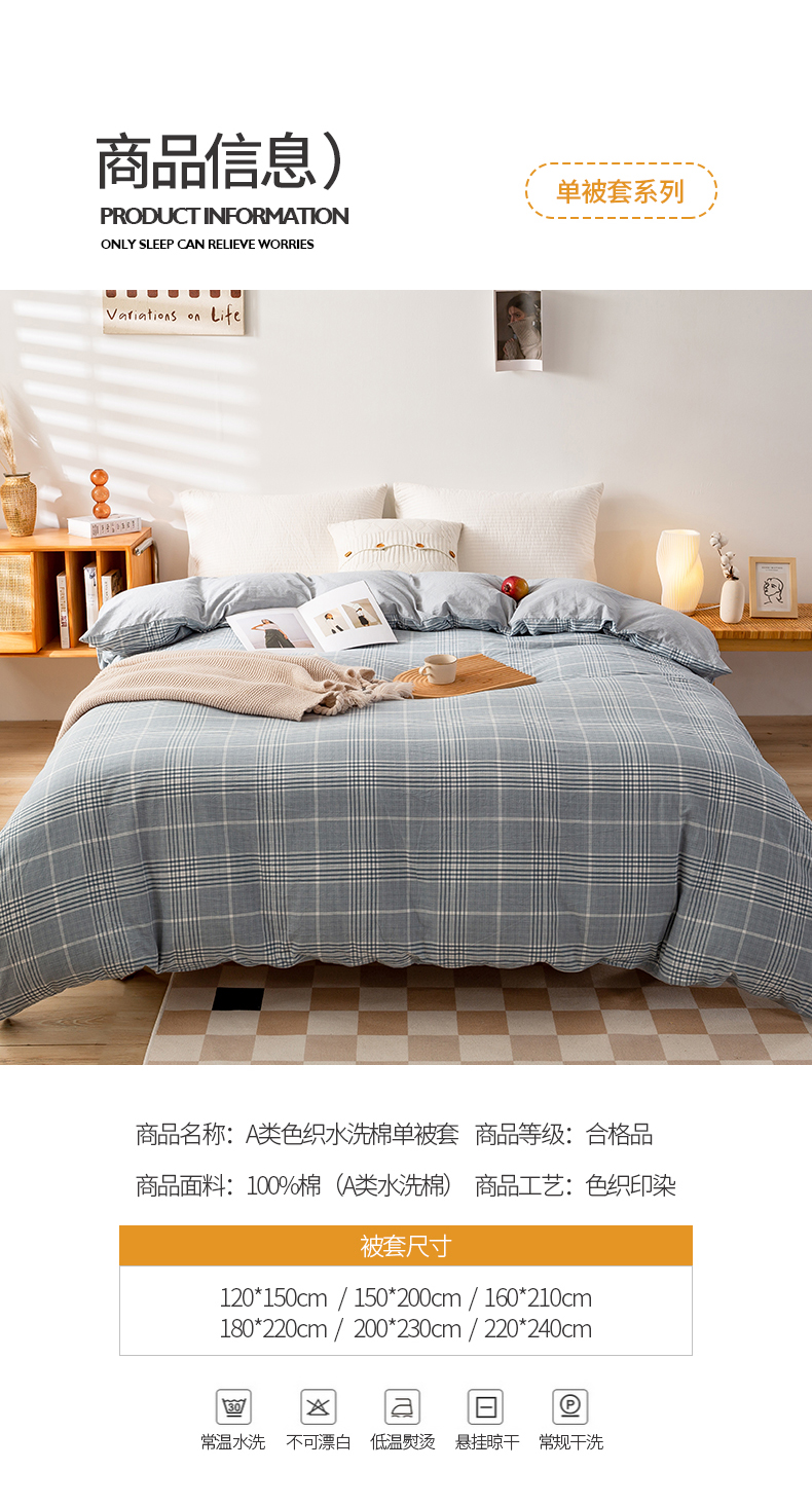 商品名称:2025新款A类色织水洗棉单被套 柏林兰