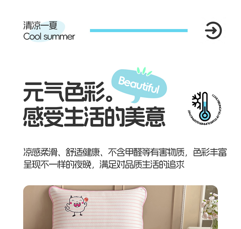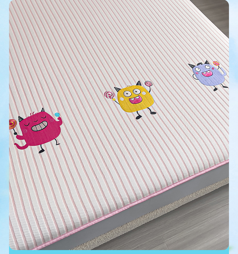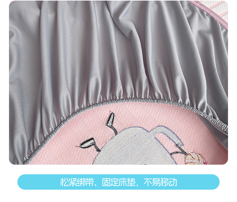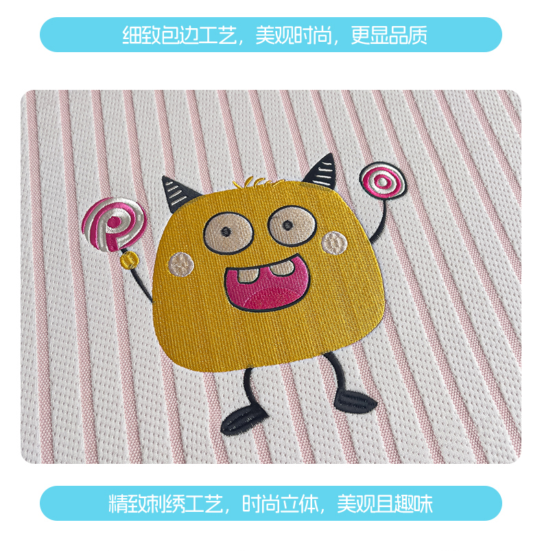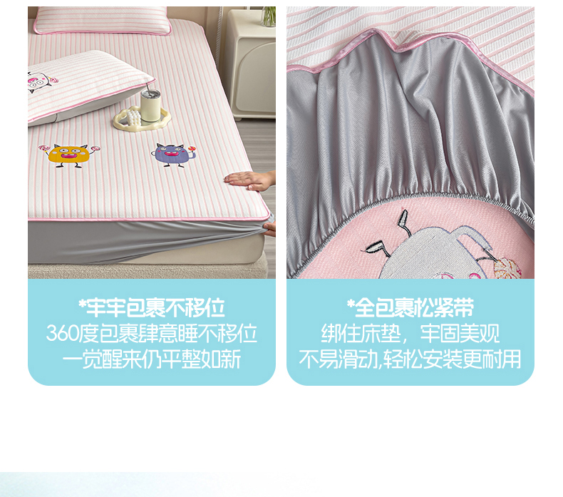 商品名称:炫拼 2025新款A类凉豆豆提花条纹卡通刺绣床笠席三件套 小怪兽糖糖