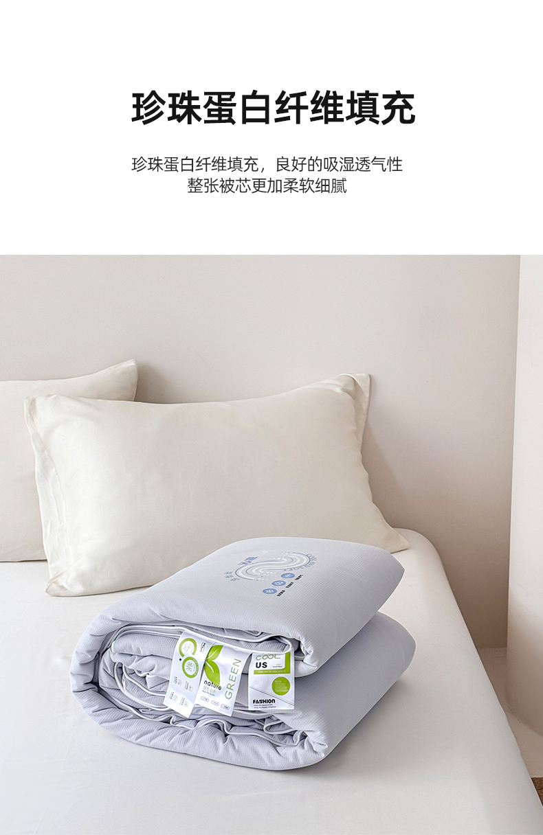 商品名称:亿莱鑫 2025新款水洗云柔棉珍珠蛋白润肤夏凉被 空调被 被子夏被春秋被 雾霾蓝