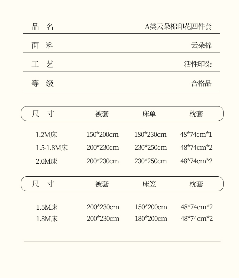 1.5/1.8床单款四件套被套200x230床单230x250 枕套2只
