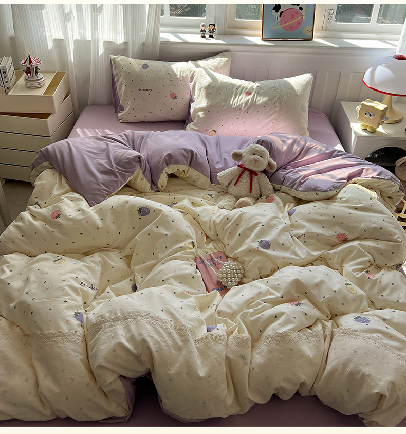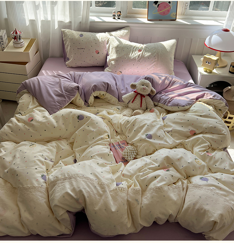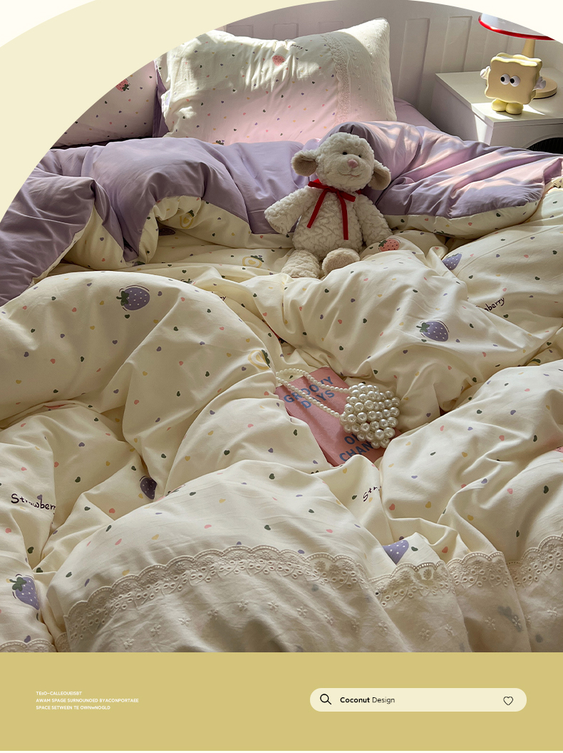 (总)韩都家居 2023新款公主风花边双拼四件套,粉玉奶黄,粉玉浅紫,奶油黄,奶油青绿,青绿奶黄,天蓝浅粉