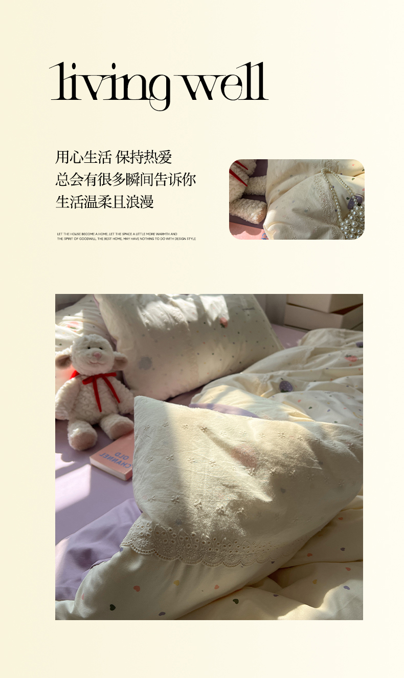 商品名称:韩都家居 2025春夏新款蕾丝花边云感双层纱四件套 清梦