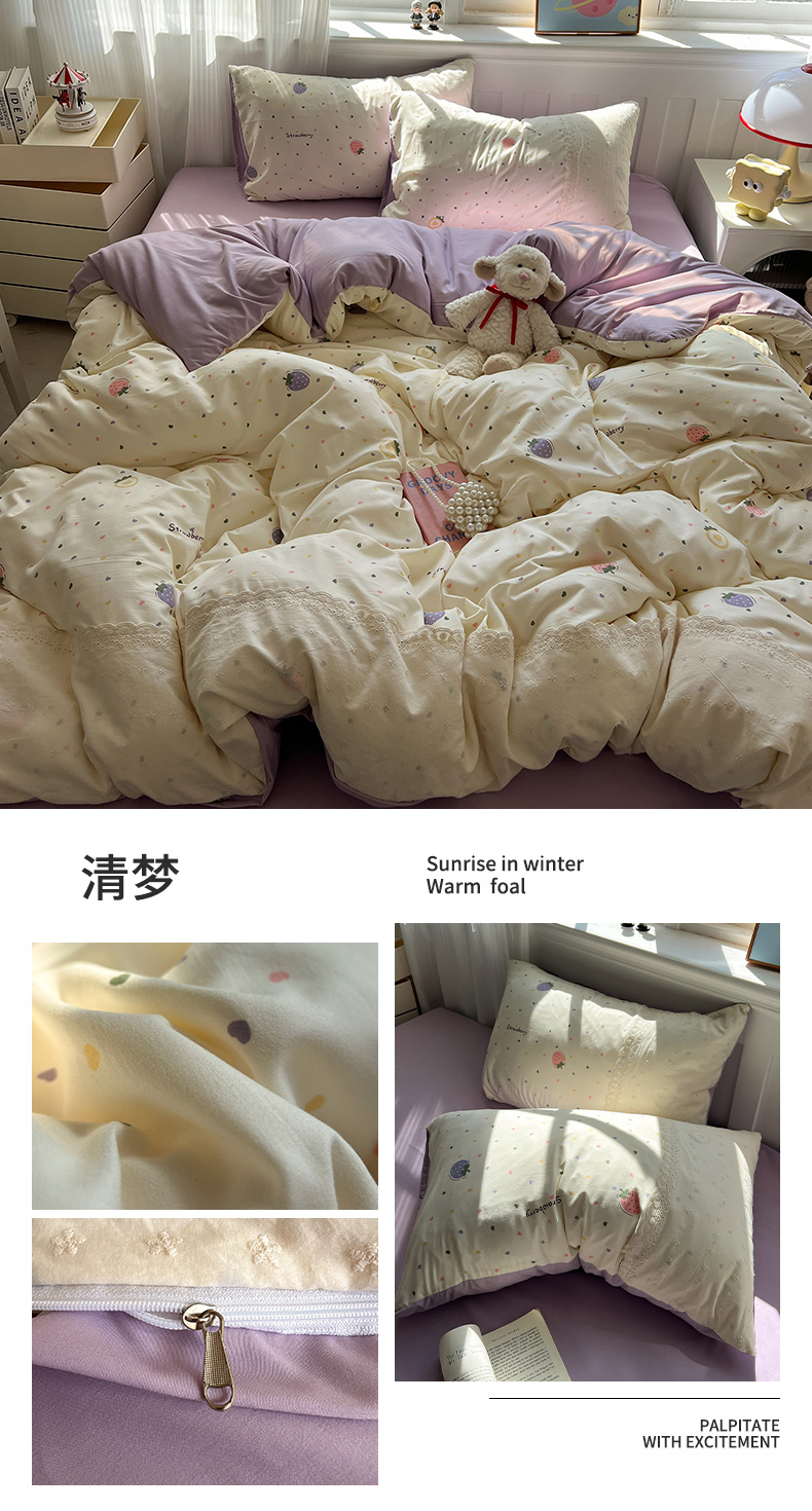 (总)韩都家居 2025新款法式花边印花牛奶绒四件套,茶花,豹纹咖,画蝶,加州风情,洛莉,陌离,南瓜,岁月留声,忘忧,艺境