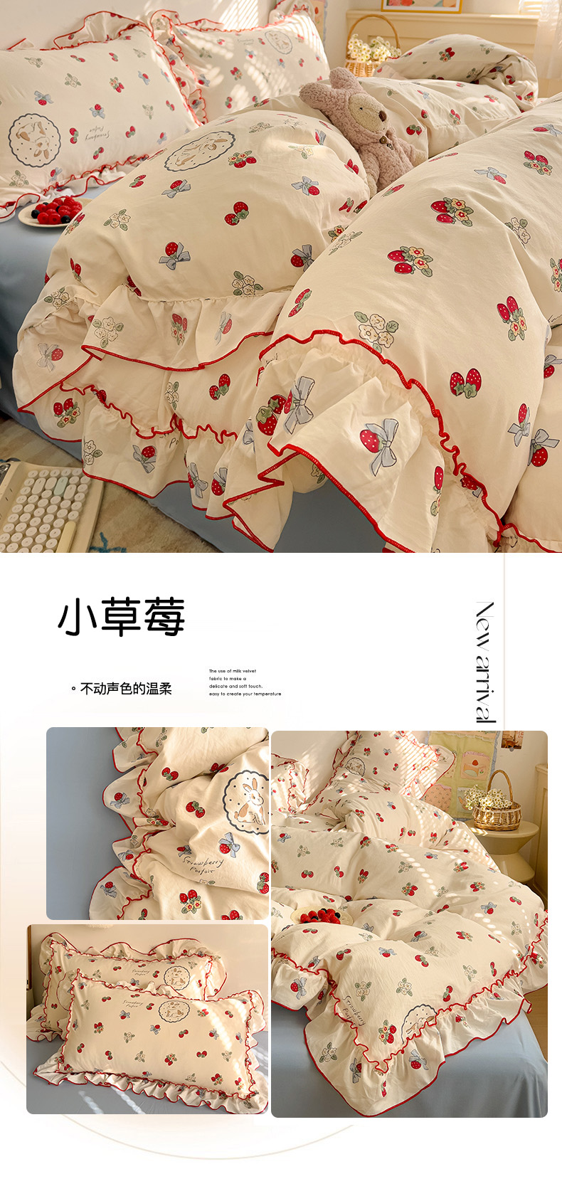 商品名称:初念 2025新款柔软水洗棉花边四件套【提供买家秀】 花边款-小草莓