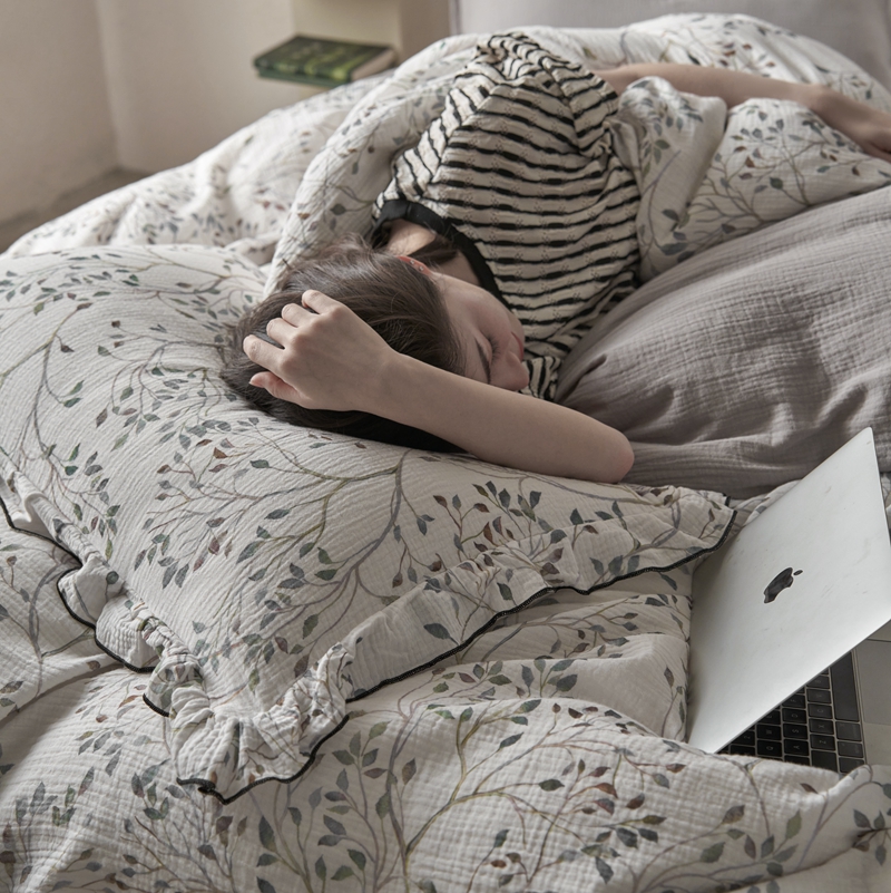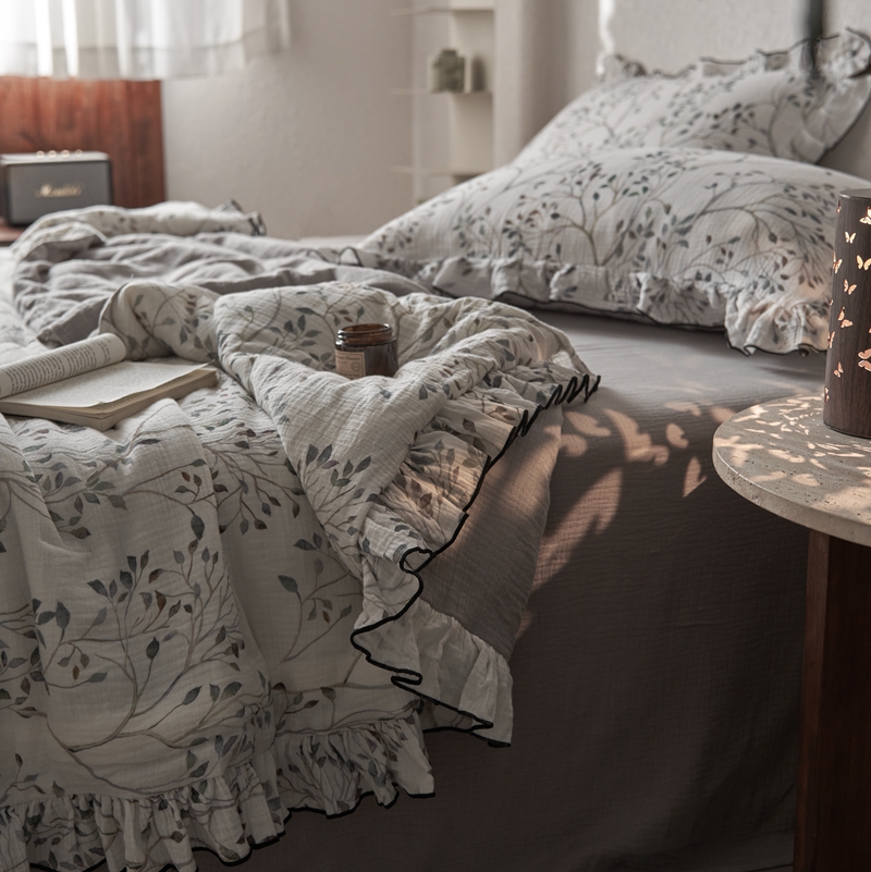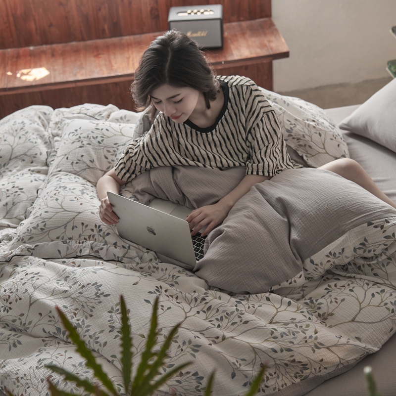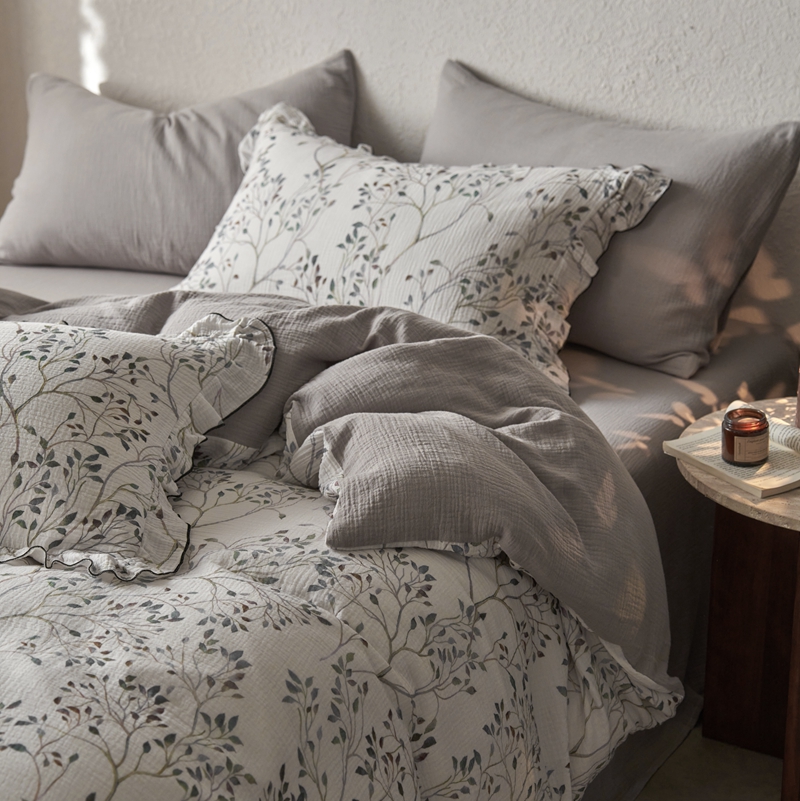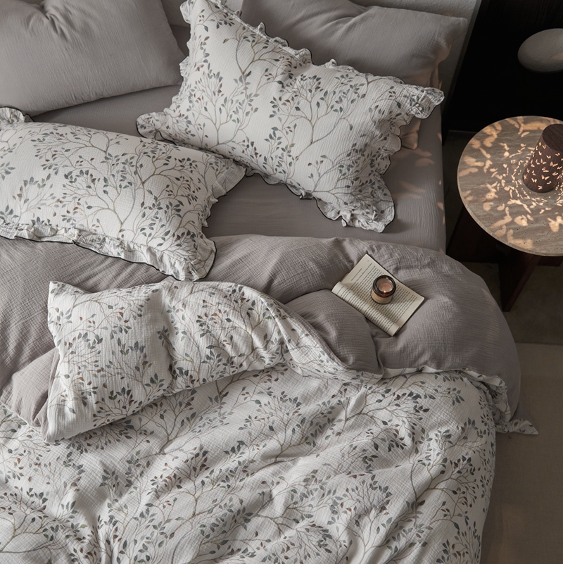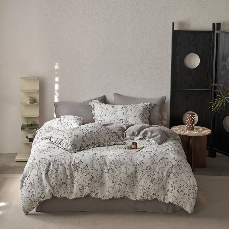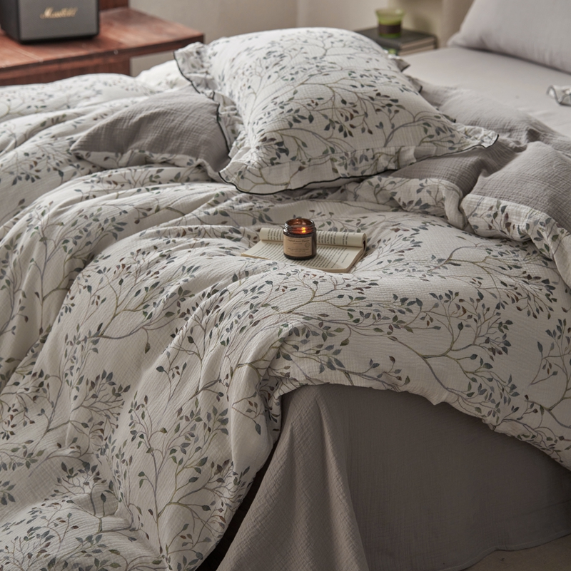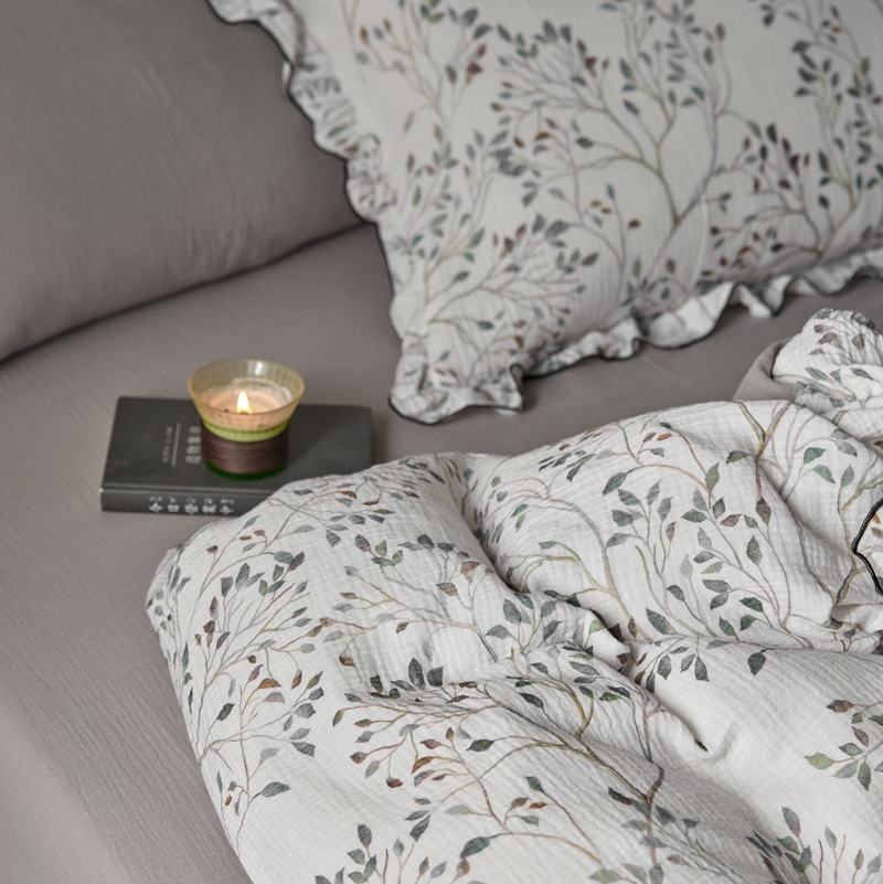 商品名称:安莱生活2025年新款全棉精梳棉双层纱绉纱数码印花四件套及夏凉被系列3 常青藤