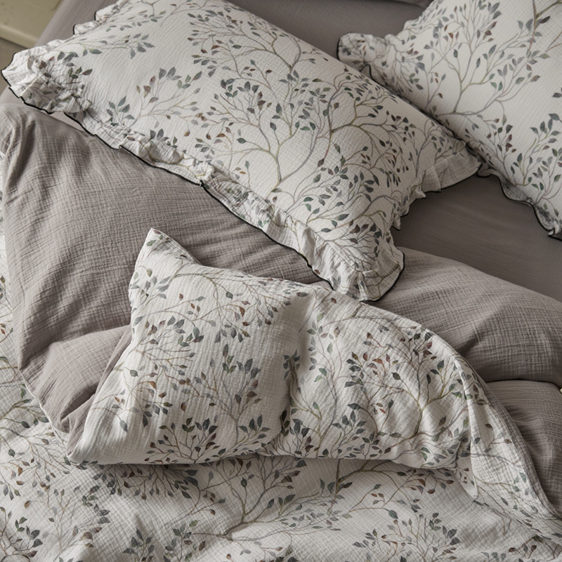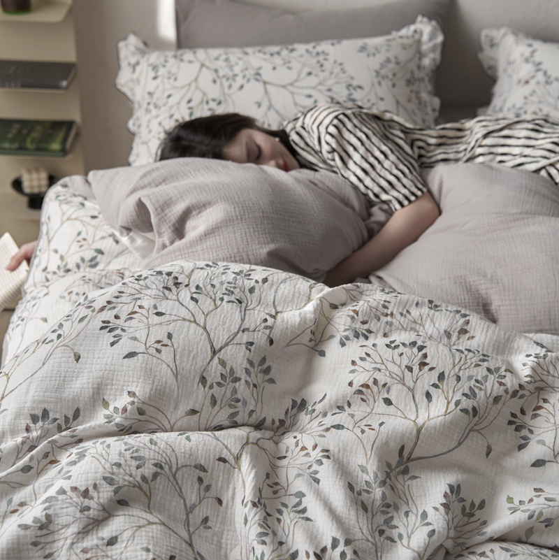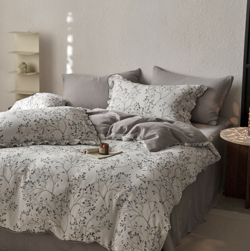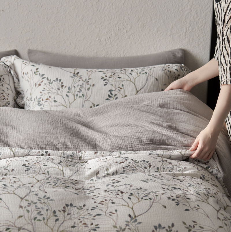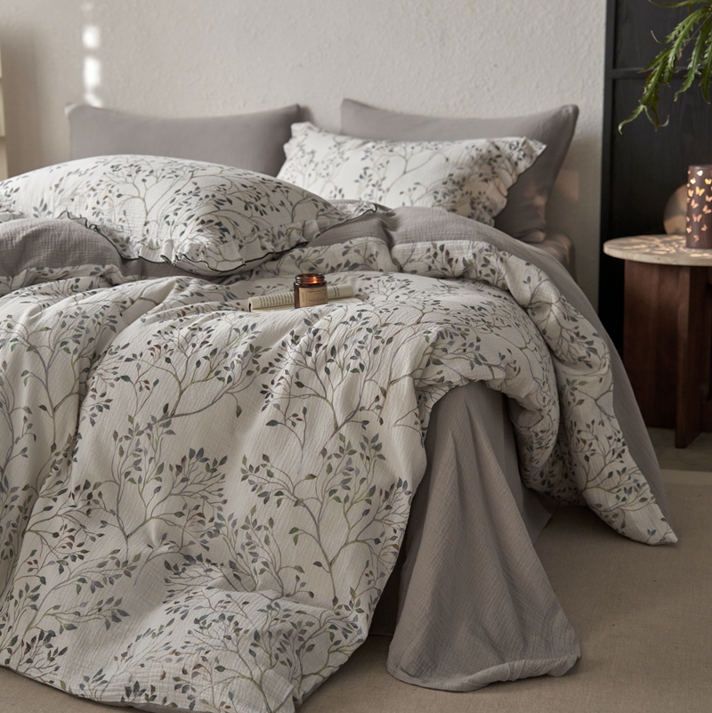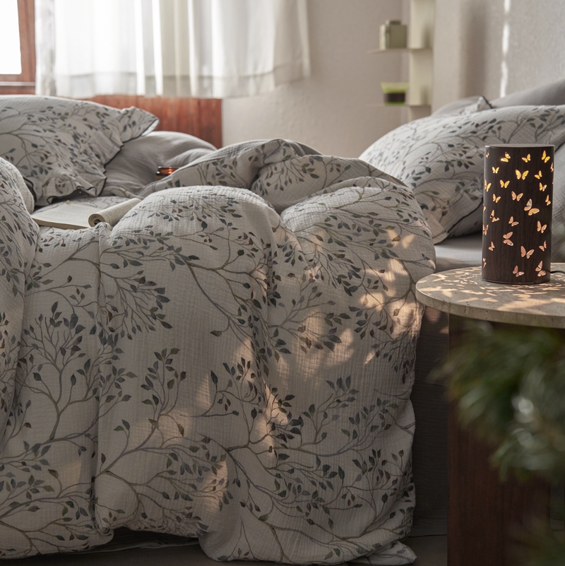 安莱生活2025年新款全棉精梳棉双层纱绉纱数码印花四件套及夏凉被系列3 常青藤
