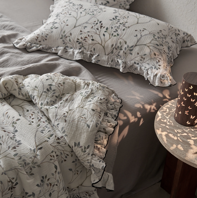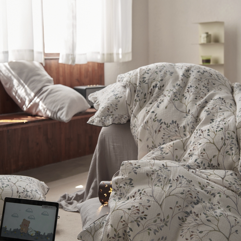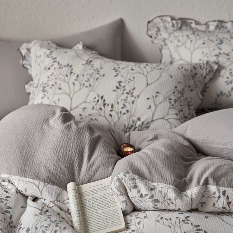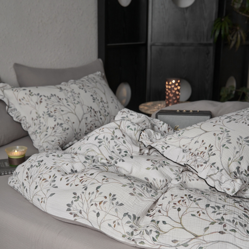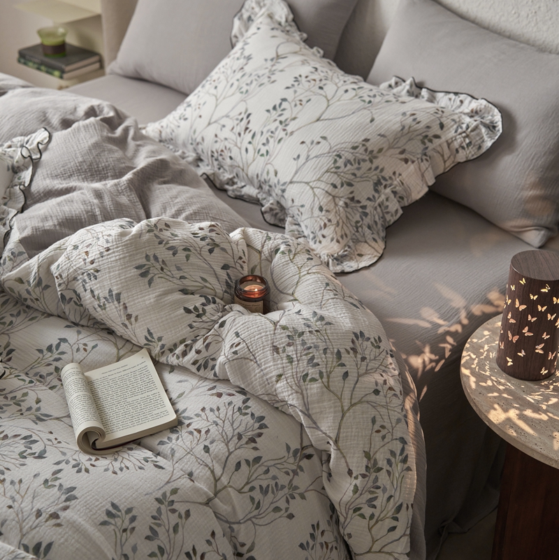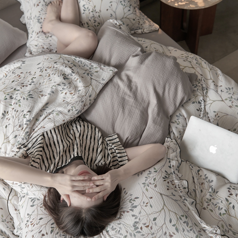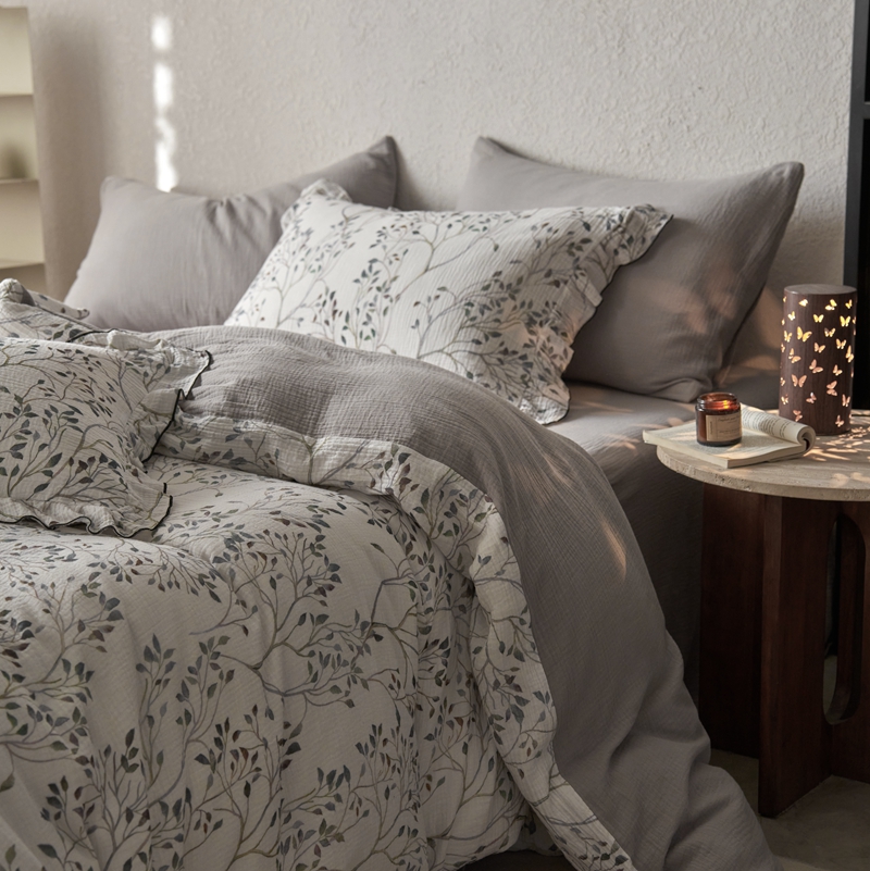 安莱生活2025年新款全棉精梳棉双层纱绉纱数码印花四件套及夏凉被系列3 常青藤
