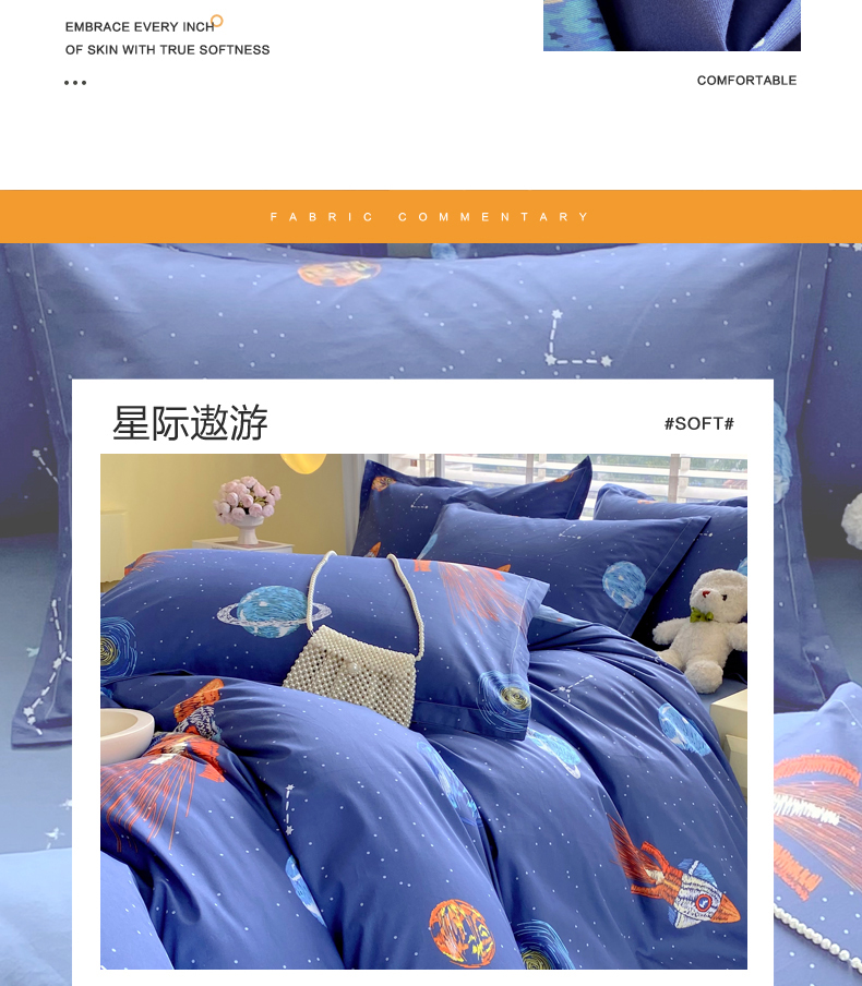 商品名称:星期三 2025年4月新款铂金全棉纯棉13372四件套 加微信有会员价 星际漫游
