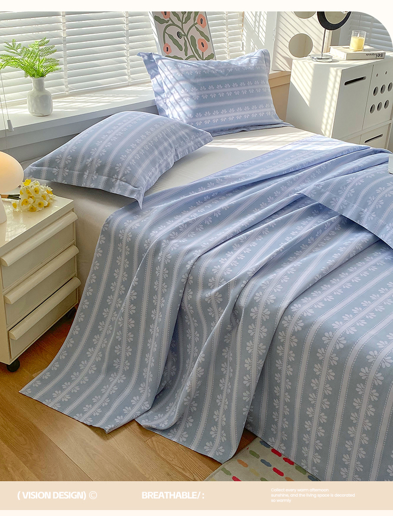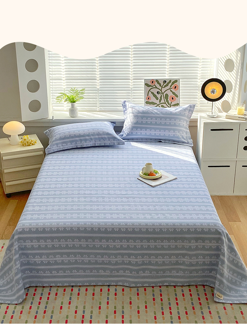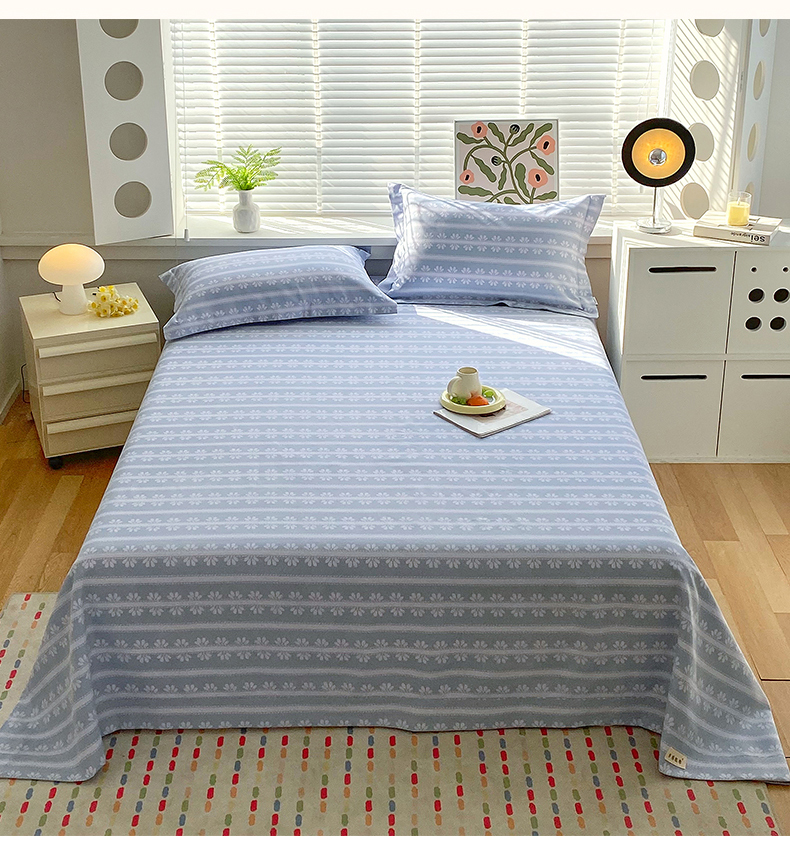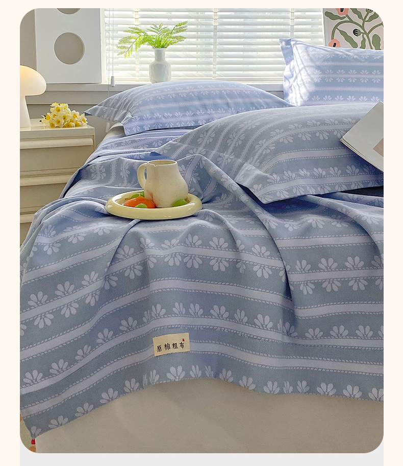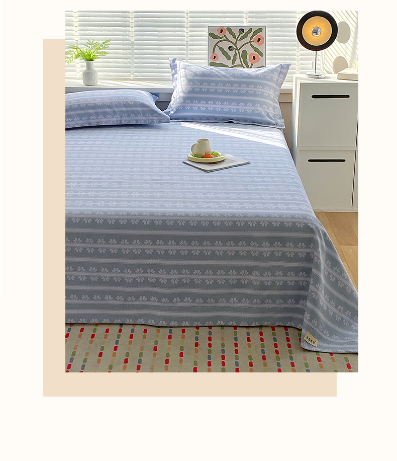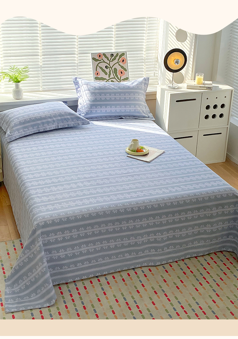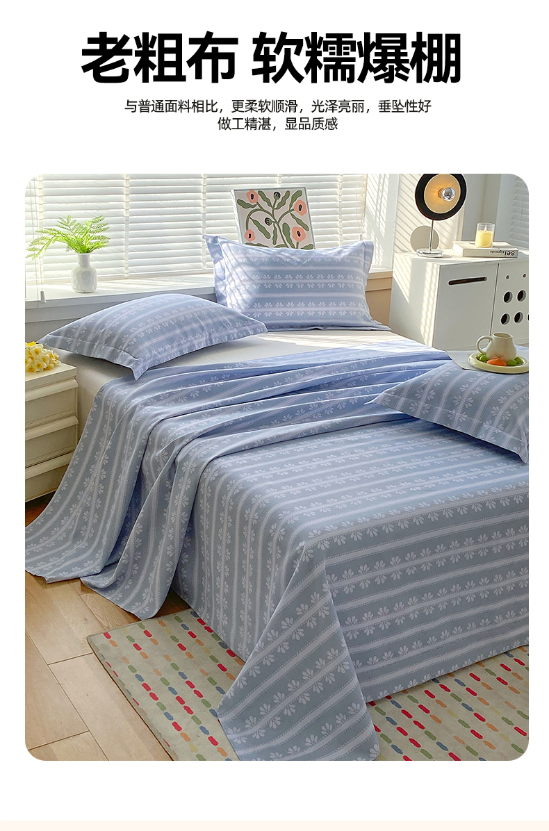凯磊2025新款老粗布印花单品床单床单单件 甜纹悠居-蓝