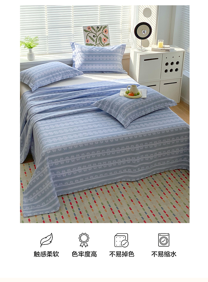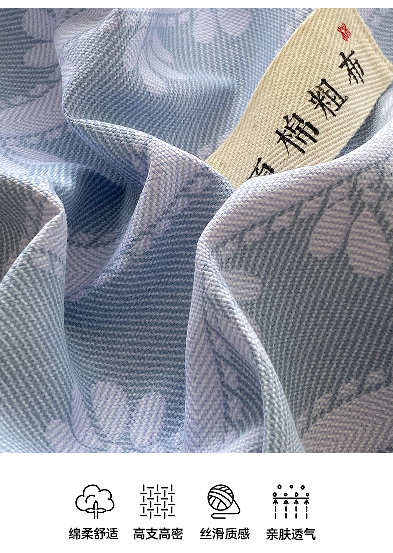商品名称:凯磊2025新款老粗布印花单品床单床单单件 甜纹悠居-蓝