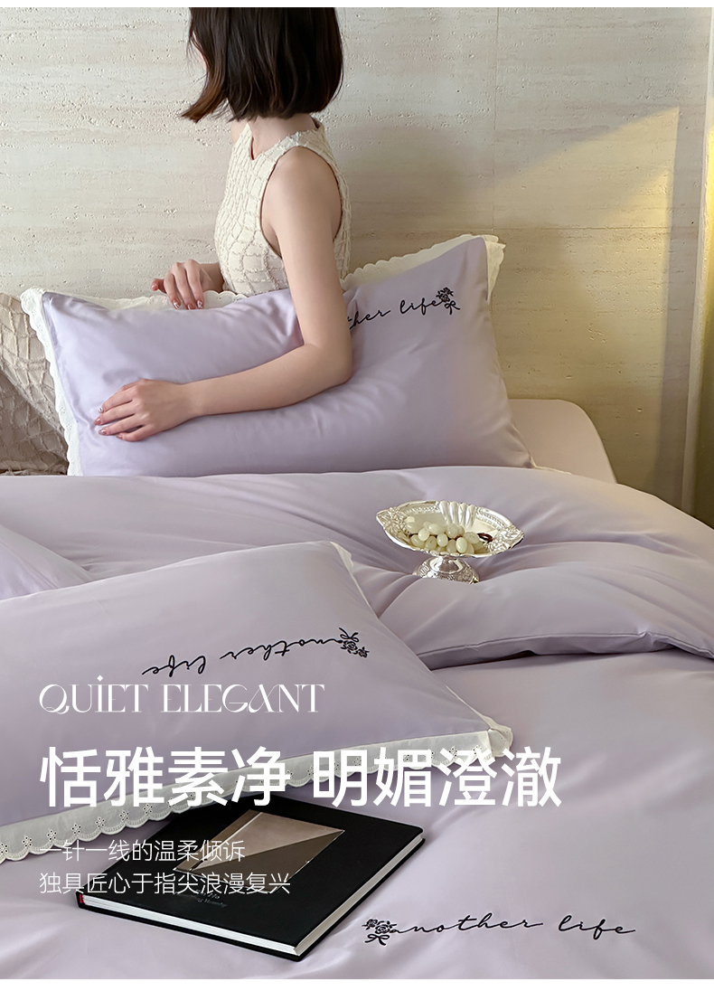 (总)名品优仓 2025新款纯棉水洗棉双层纱提花韩版花边四件套-约定
