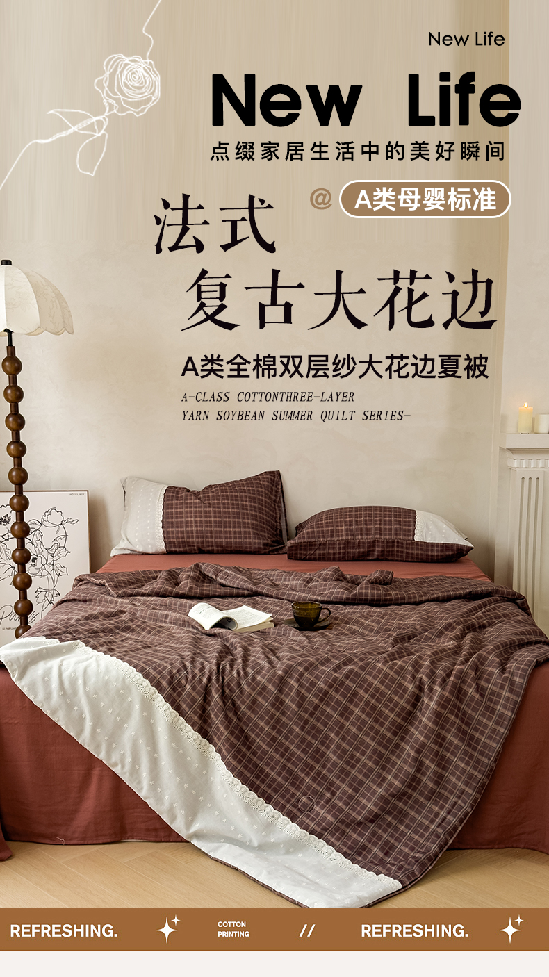 当前位置: 91家纺网 > 商品网购 > 床品套件 > 四件套 > 曼町家居 2025春夏新款全棉纯棉双层纱法式镂空立体大花边夏被夏凉被空调被四件套 佩斯利