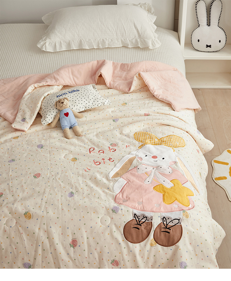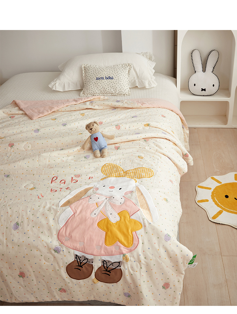 (总)荷马之梦 2025新款轻芯系列-A类双层纱纯棉印花贴布绣卡通被子春秋被冬被儿童安抚被,乖小兔,酷小熊,快乐熊猫,音乐小象