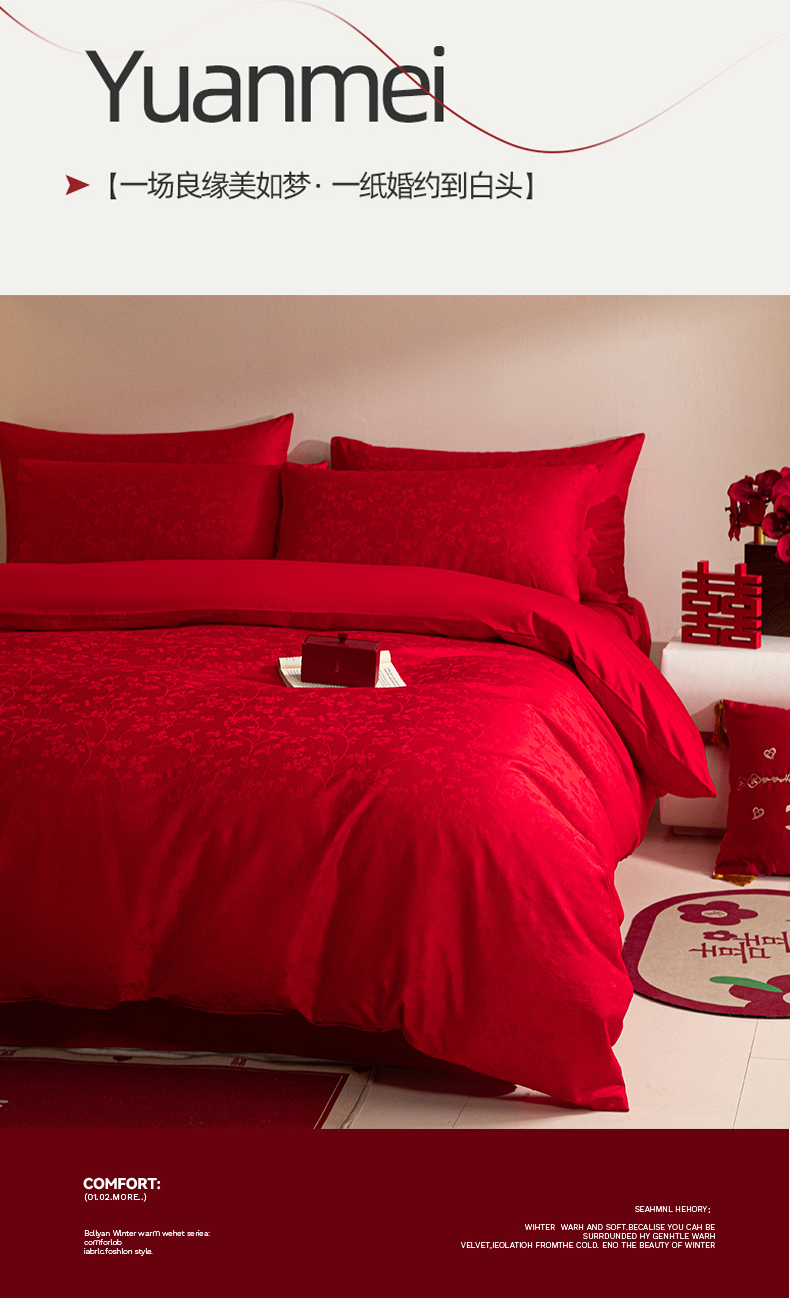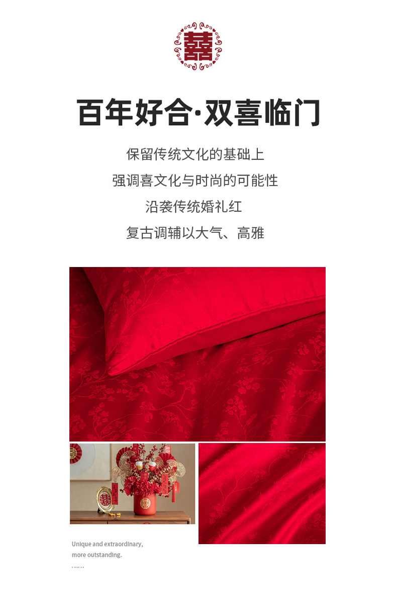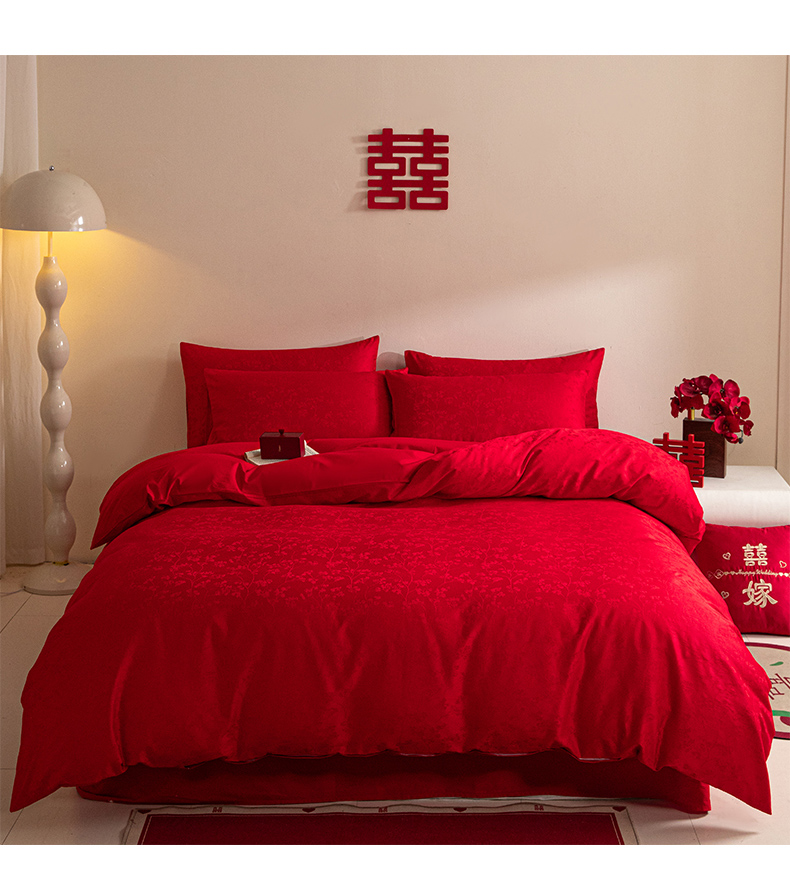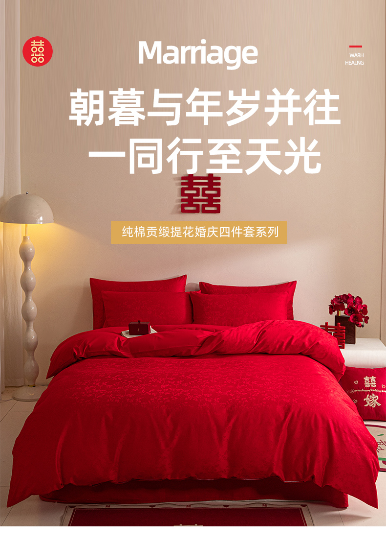 商品名称:琪格格纺织 2025新款纯棉婚庆四件套结婚用品提花简约婚庆 叶满良缘