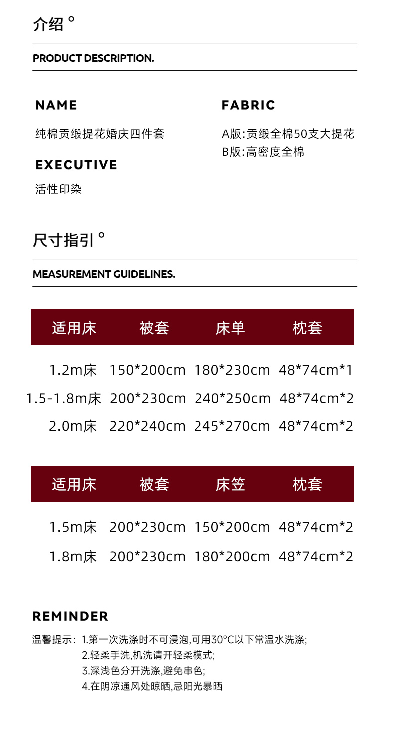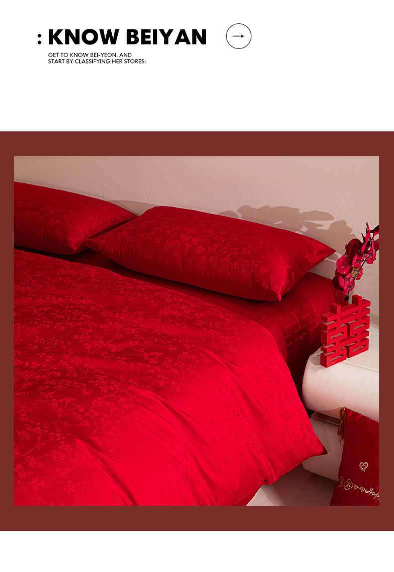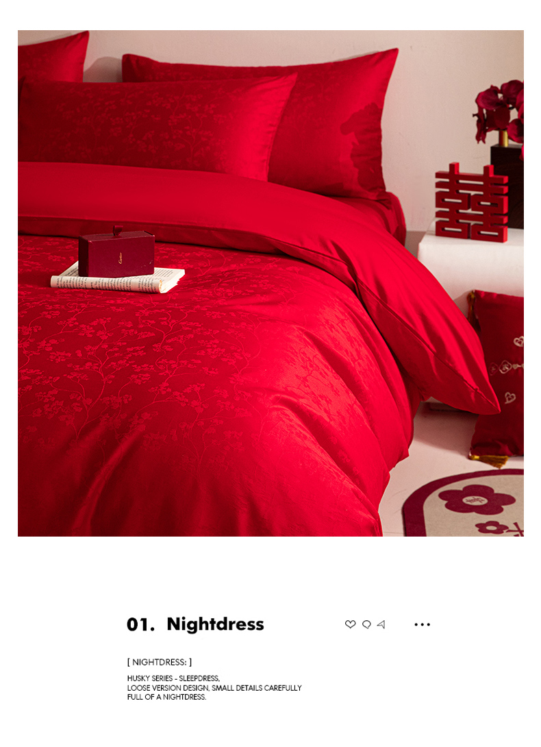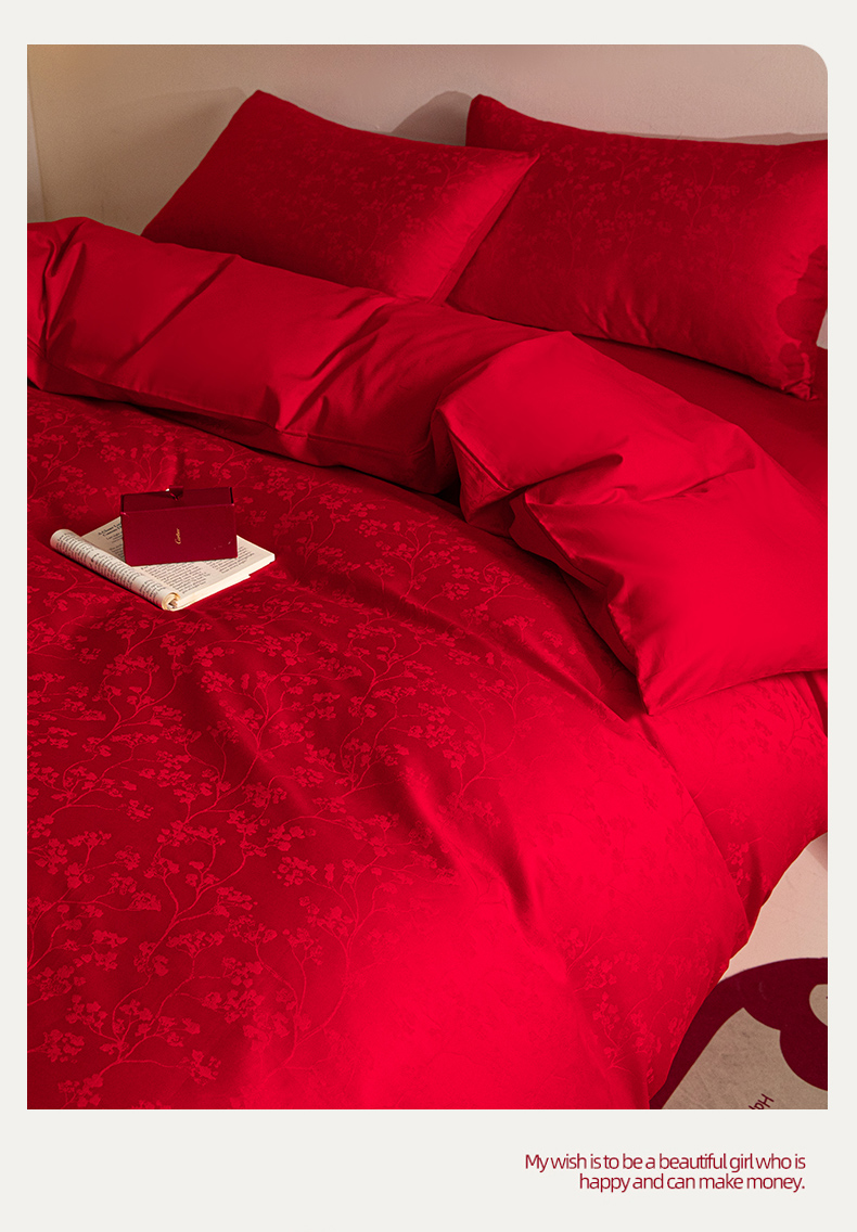 商品名称:琪格格纺织 2025新款纯棉婚庆四件套结婚用品提花简约婚庆 叶满良缘