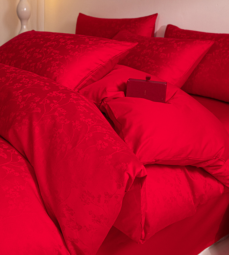 琪格格纺织 2025新款纯棉婚庆四件套结婚用品提花简约婚庆 叶满良缘