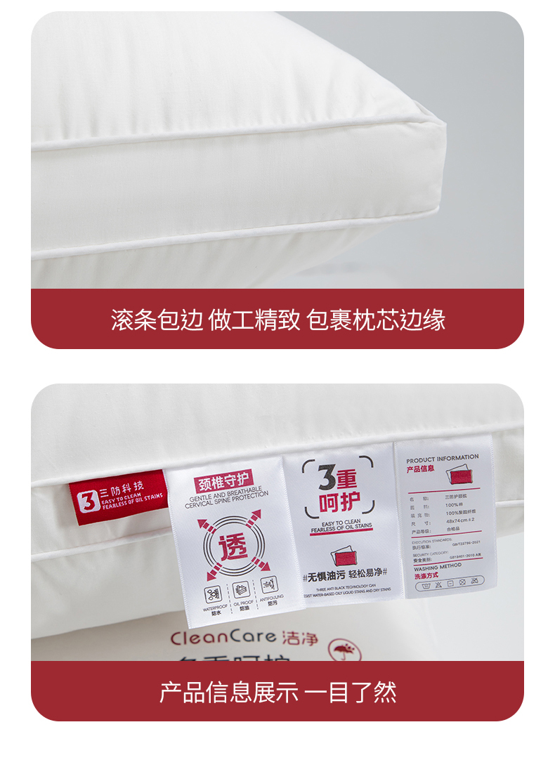 当前位置: 91家纺网 > 商品网购 > 枕头/枕芯/保健枕/颈椎枕 > 普通枕芯 > 爱来伊2025新款A类全棉三防枕头酒店枕纯棉酒店三防枕芯枕头 三防-低枕