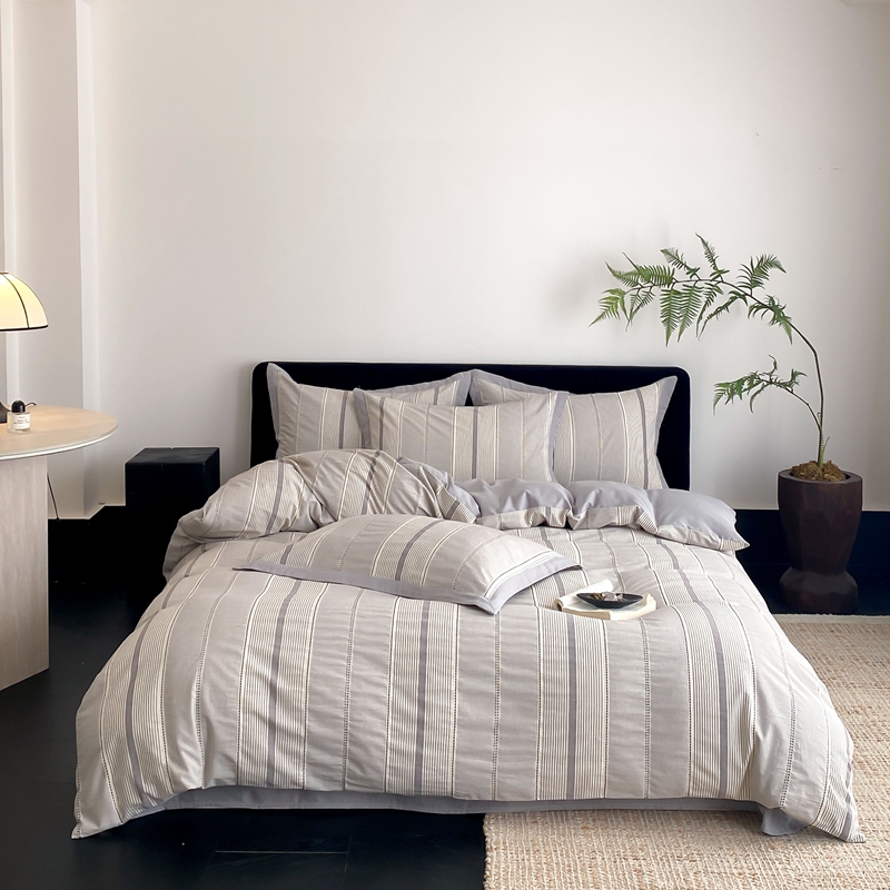 (总)旷野2025新款全棉纯棉色织空气层提花泡泡纱四件套,悉尼海岸-灰,悉尼海岸-蓝,悉尼海岸-棕