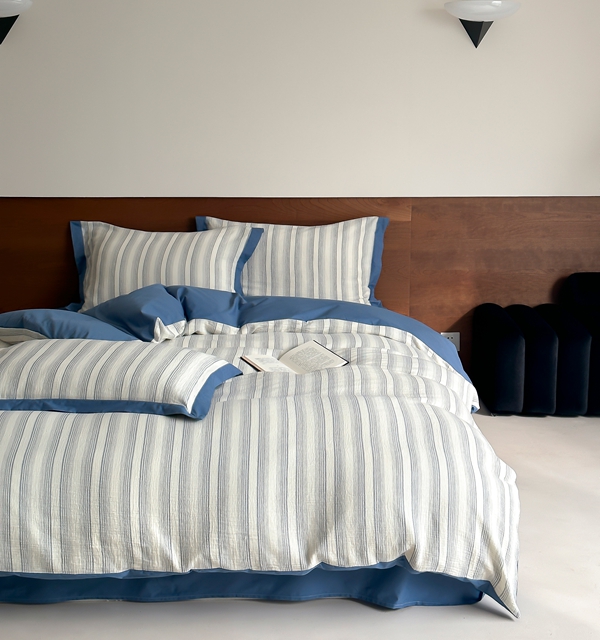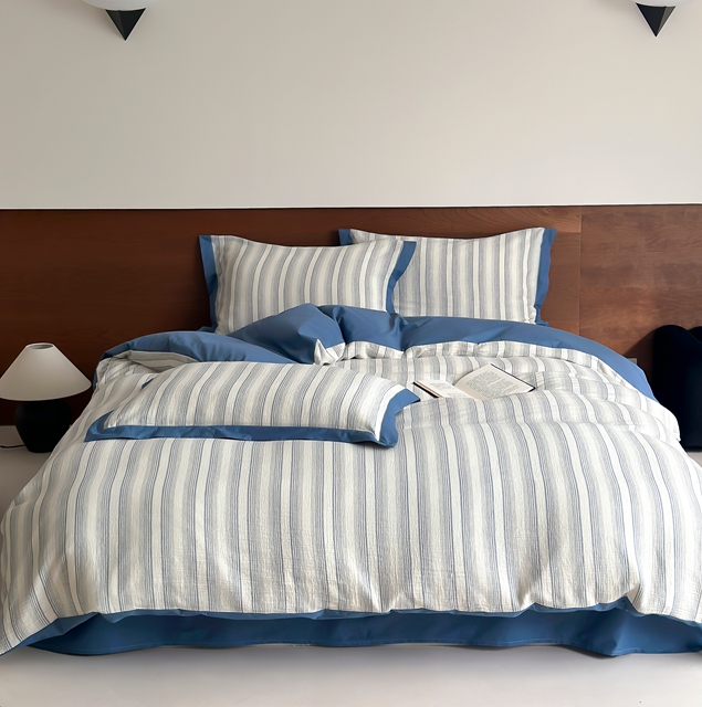 (总)旷野2025新款全棉纯棉色织空气层提花泡泡纱四件套,悉尼海岸-灰,悉尼海岸-蓝,悉尼海岸-棕