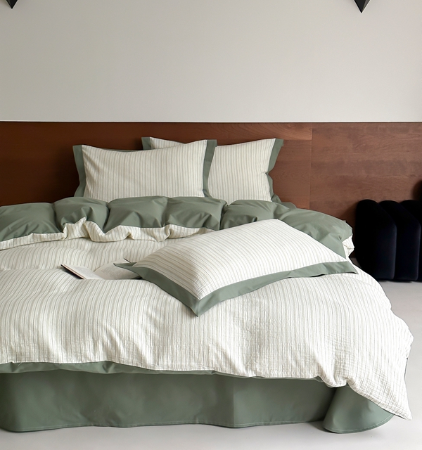 (总)旷野 2025新款空气层提花皱皱纱碎花边工艺款四件套-竹梦,竹梦