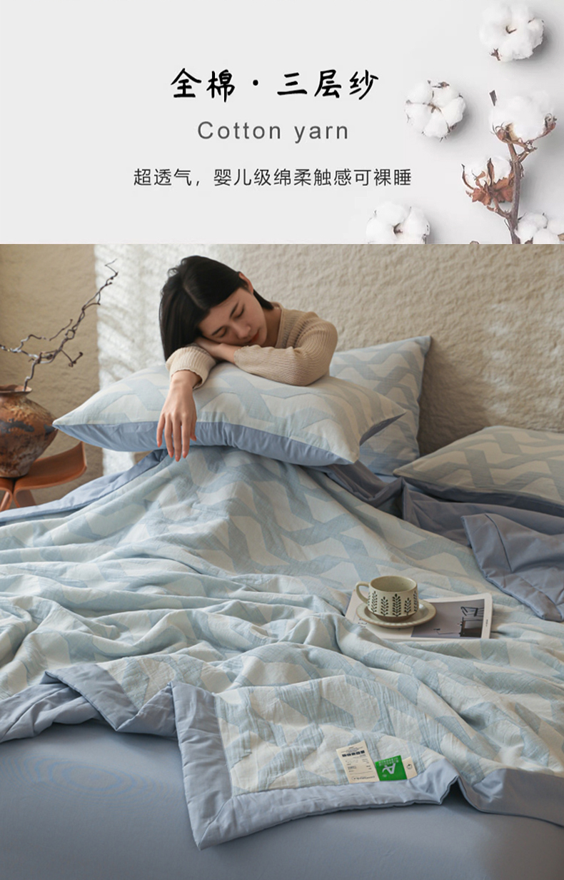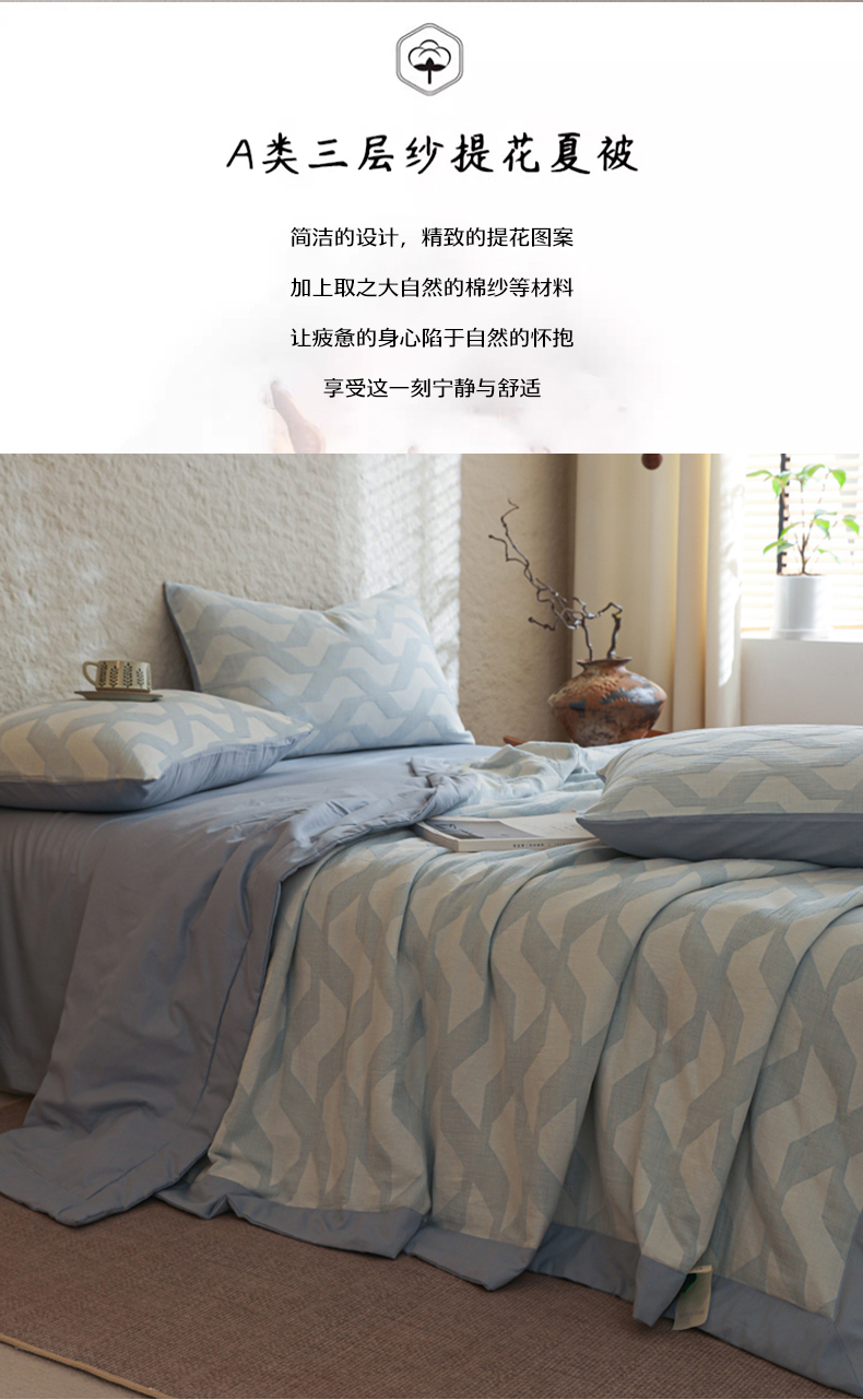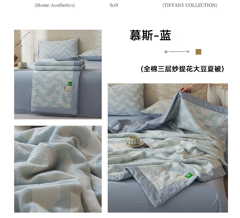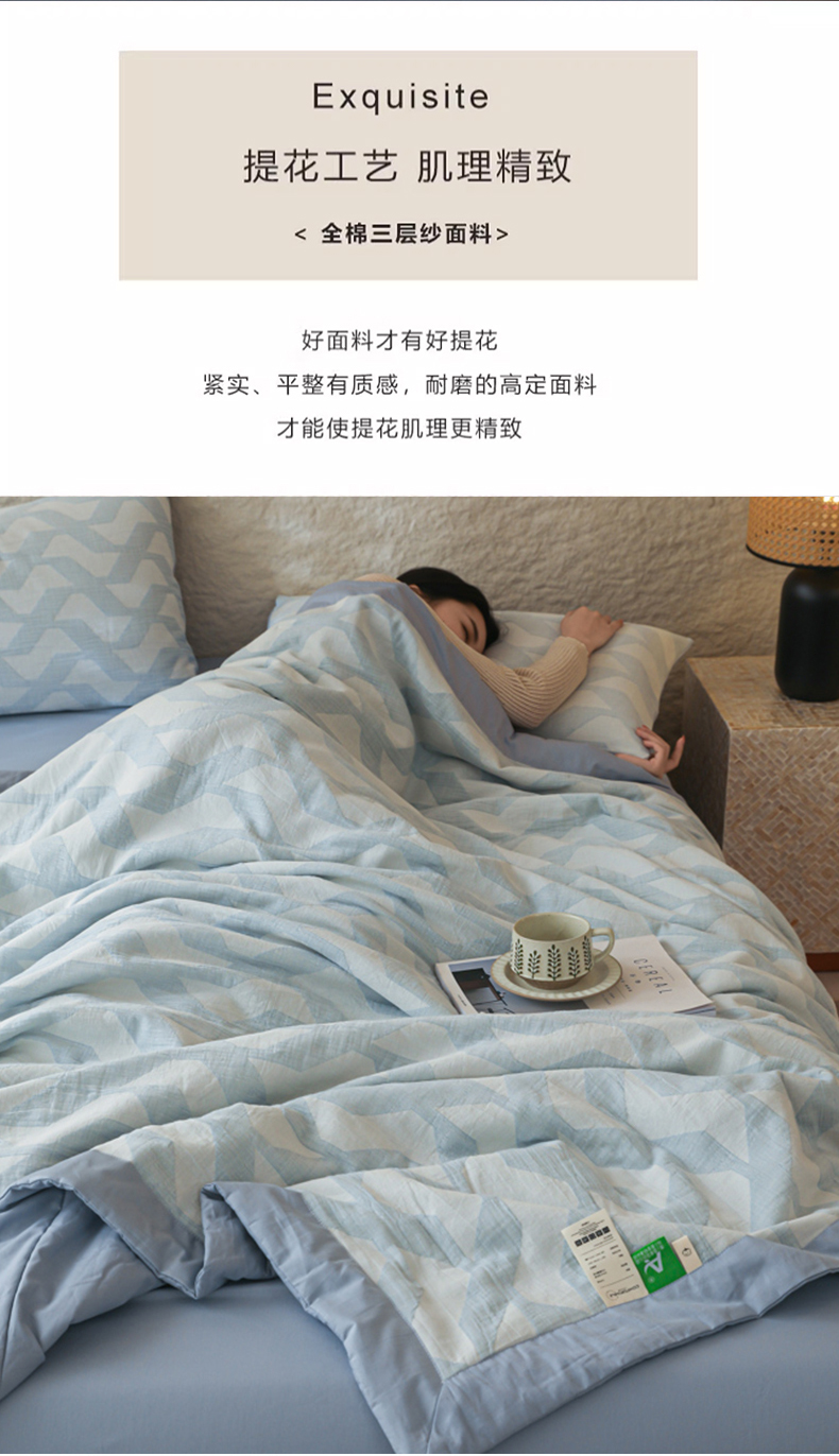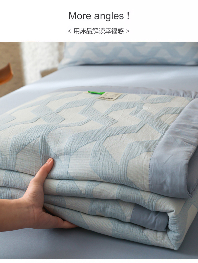 当前位置: 91家纺网 > 商品网购 > 床品套件 > 四件套 > 提花四件套 > 眠博士 2025新款A类全棉包边三层纱提花夏被四件套 包边三层纱夏被-慕斯-蓝