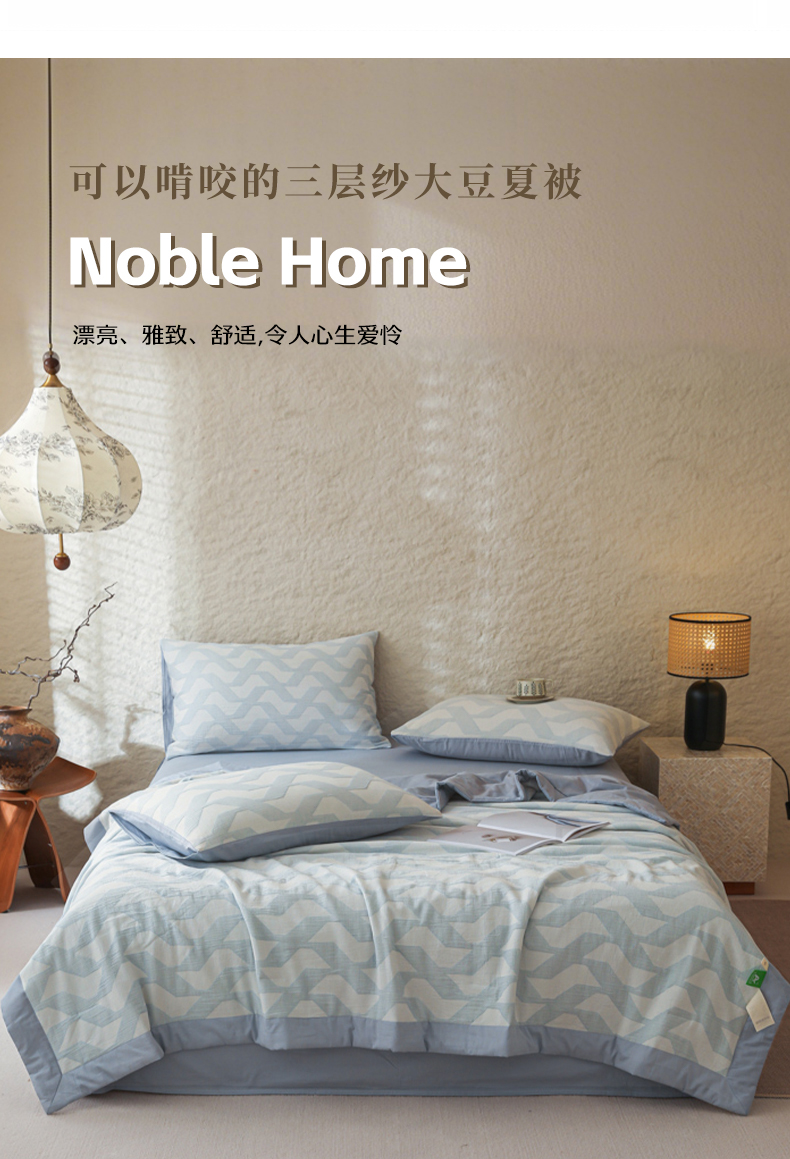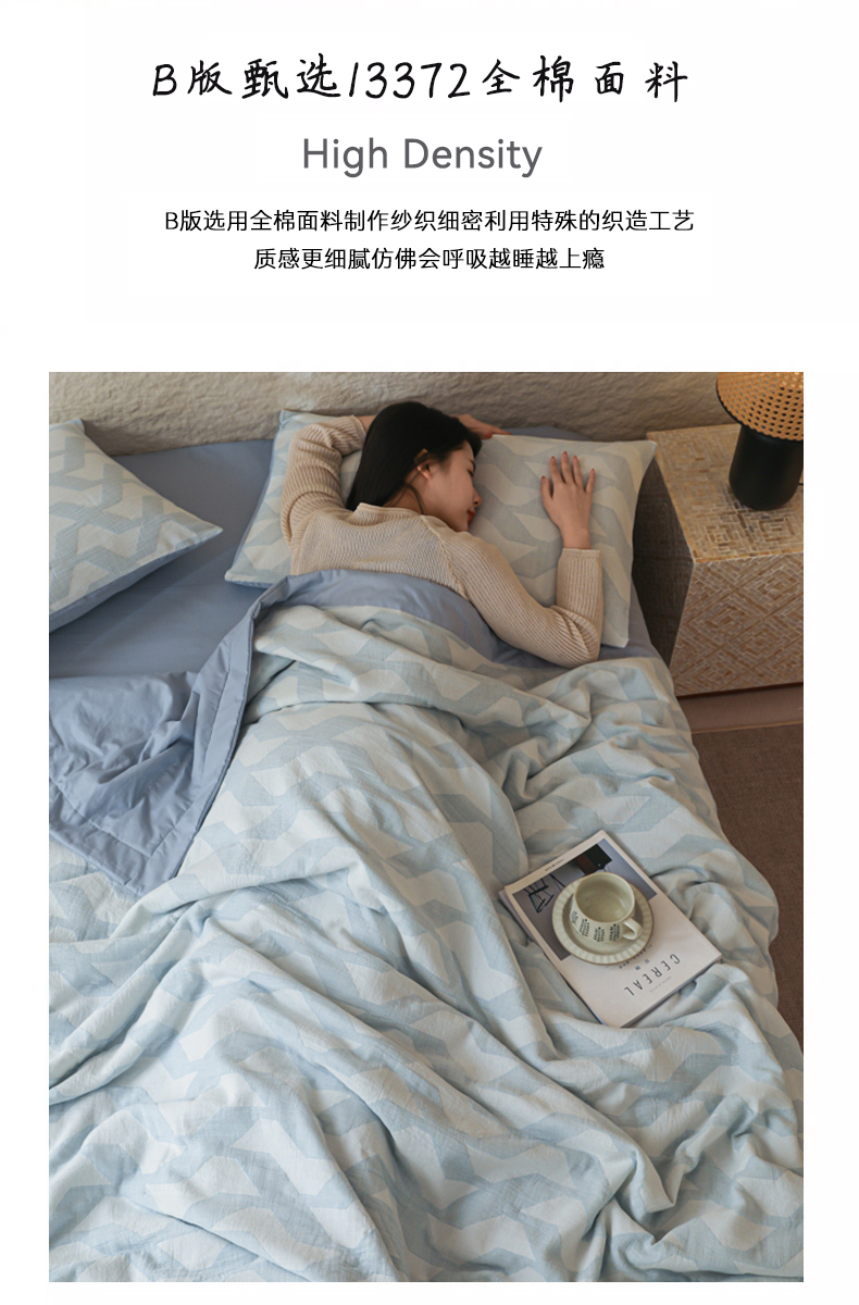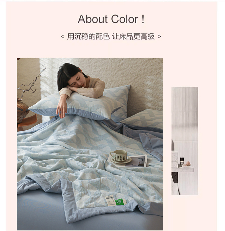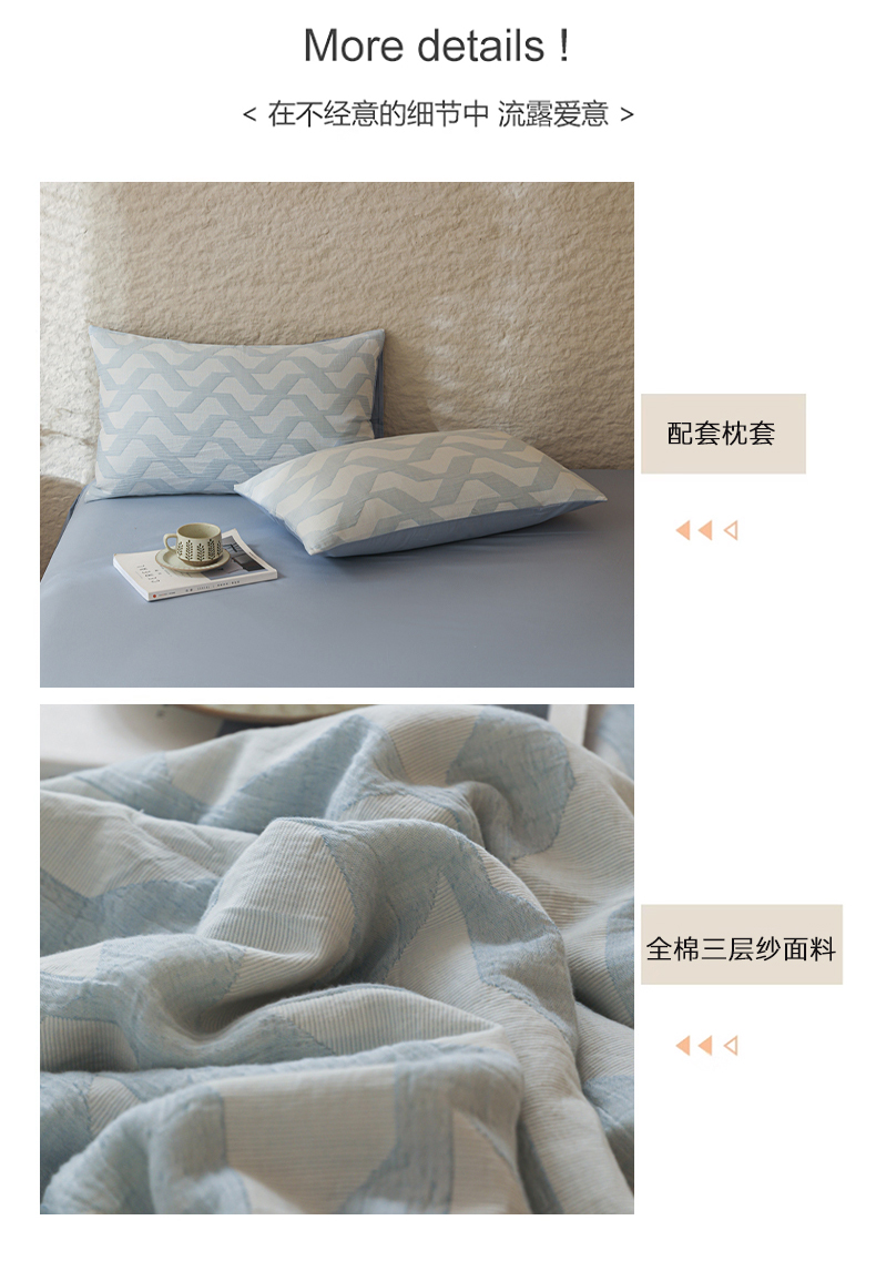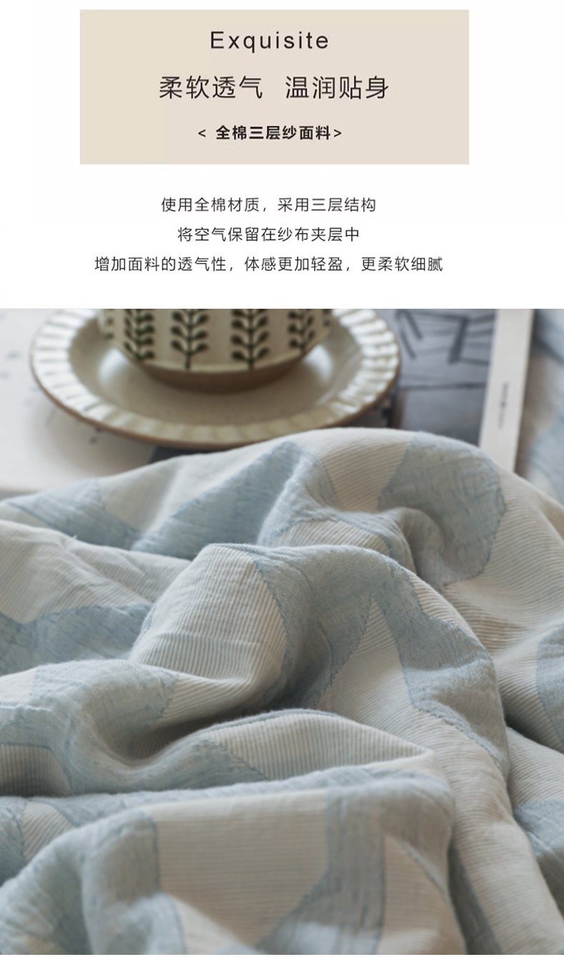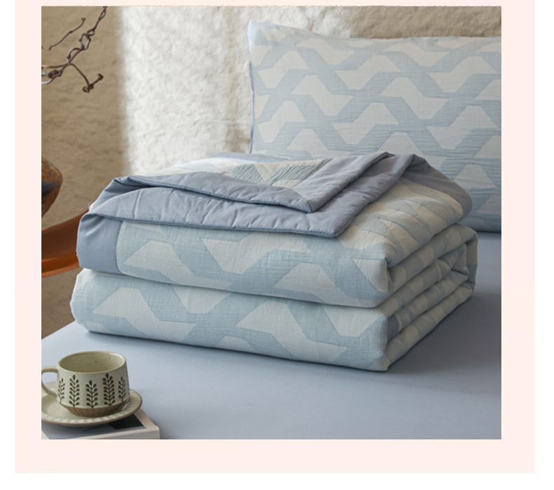 当前位置: 91家纺网 > 商品网购 > 床品套件 > 四件套 > 提花四件套 > 眠博士 2025新款A类全棉包边三层纱提花夏被四件套 包边三层纱夏被-慕斯-蓝
