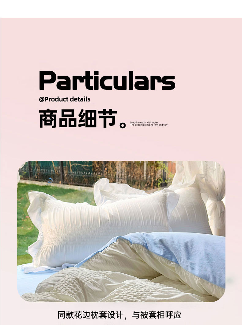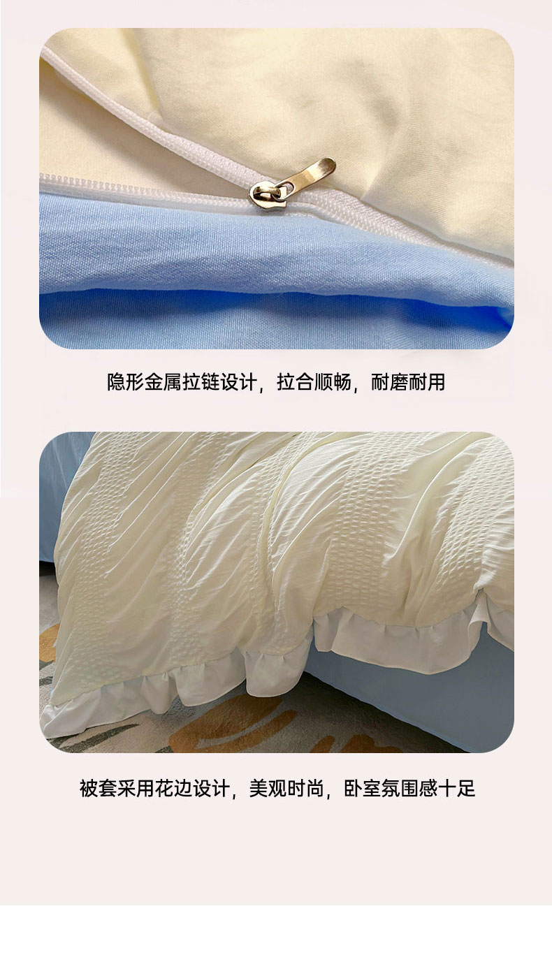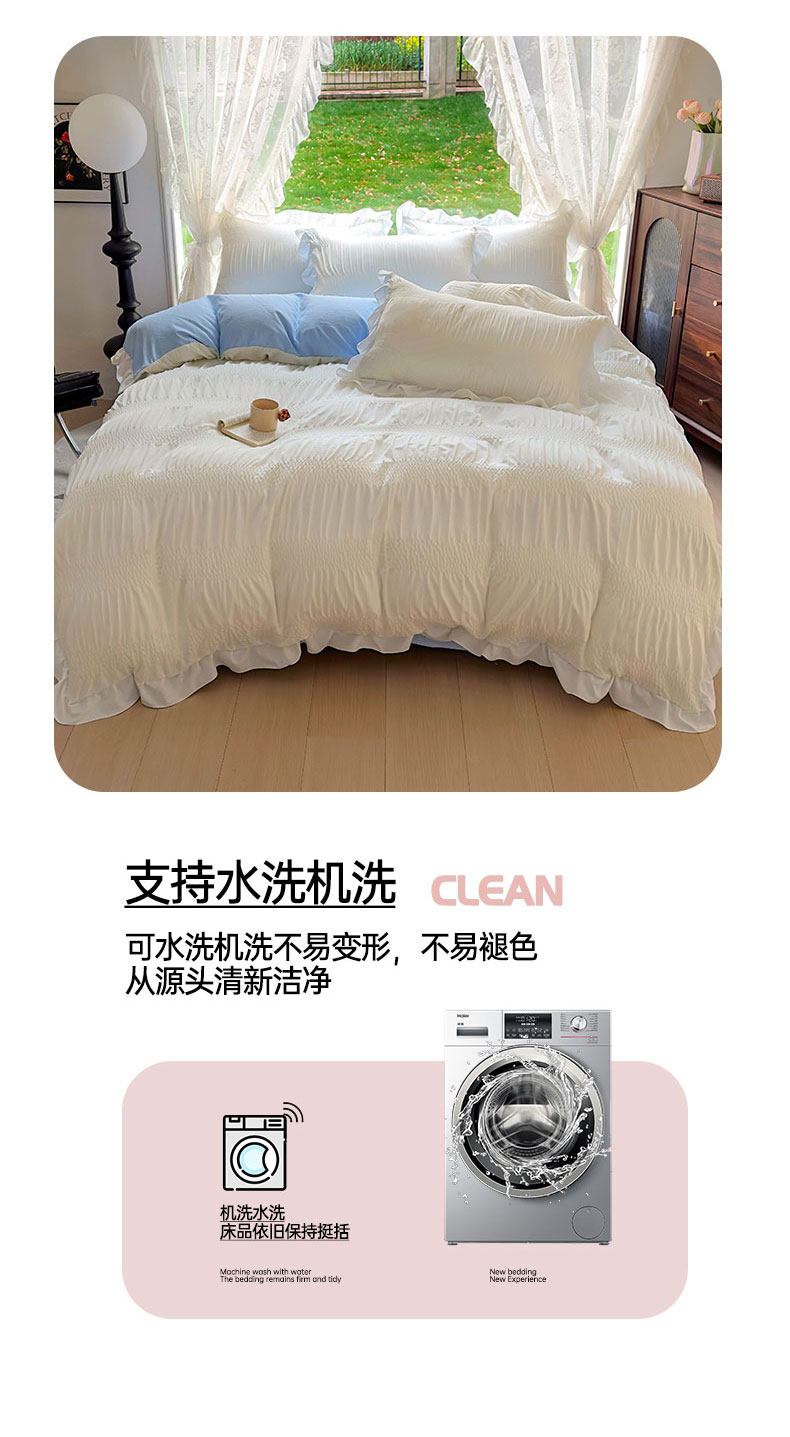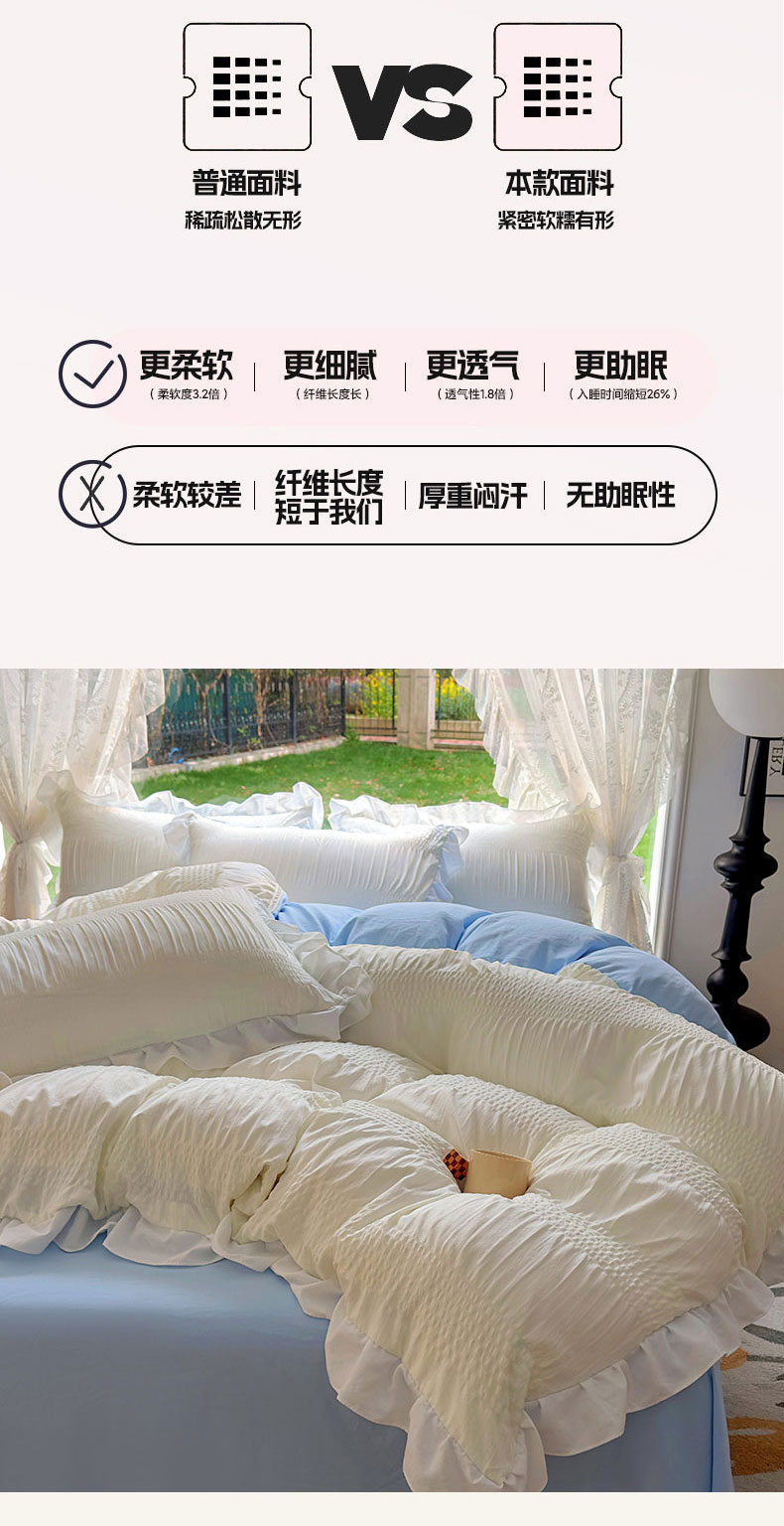 当前位置: 91家纺网 > 商品网购 > 床品套件 > 四件套 > 其它四件套 > 灰鲸2025新款泡泡纱公主风花边款四件套 泡泡纱花边款-奶昔白+天空蓝