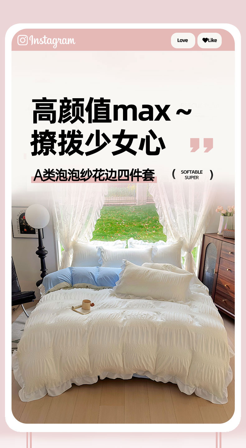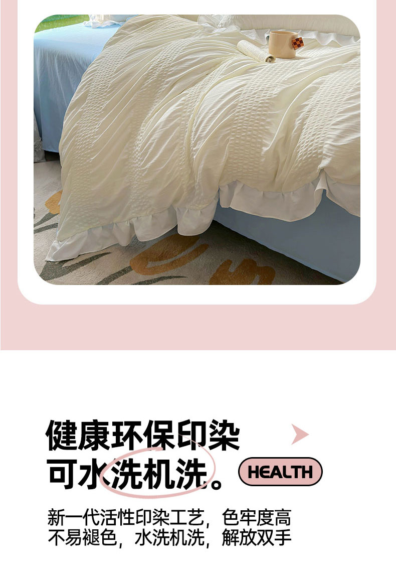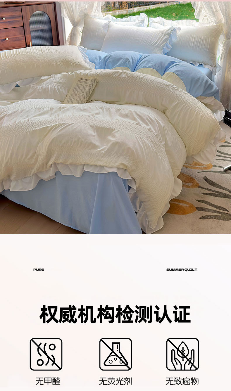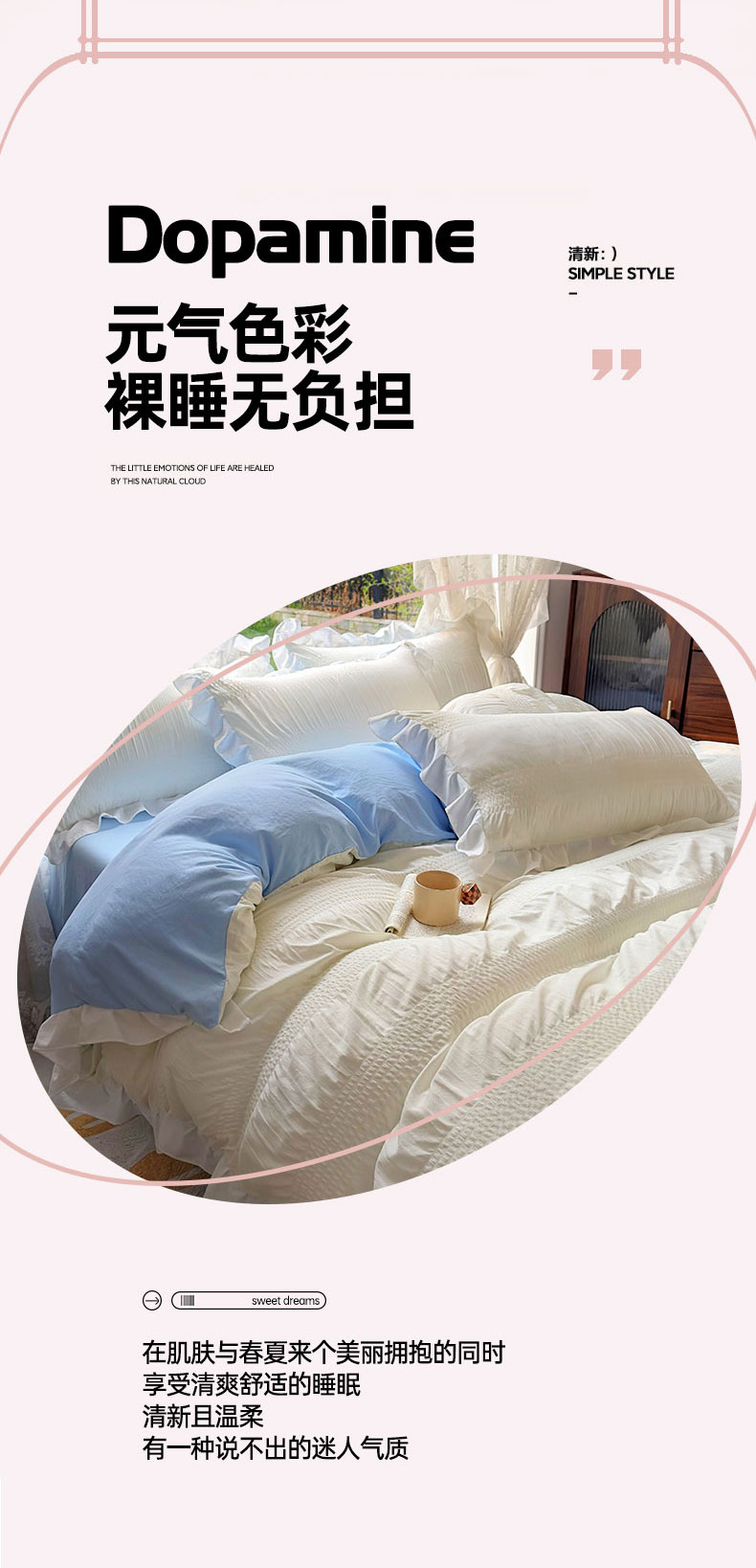 当前位置: 91家纺网 > 商品网购 > 床品套件 > 四件套 > 其它四件套 > 灰鲸2025新款泡泡纱公主风花边款四件套 泡泡纱花边款-奶昔白+天空蓝
