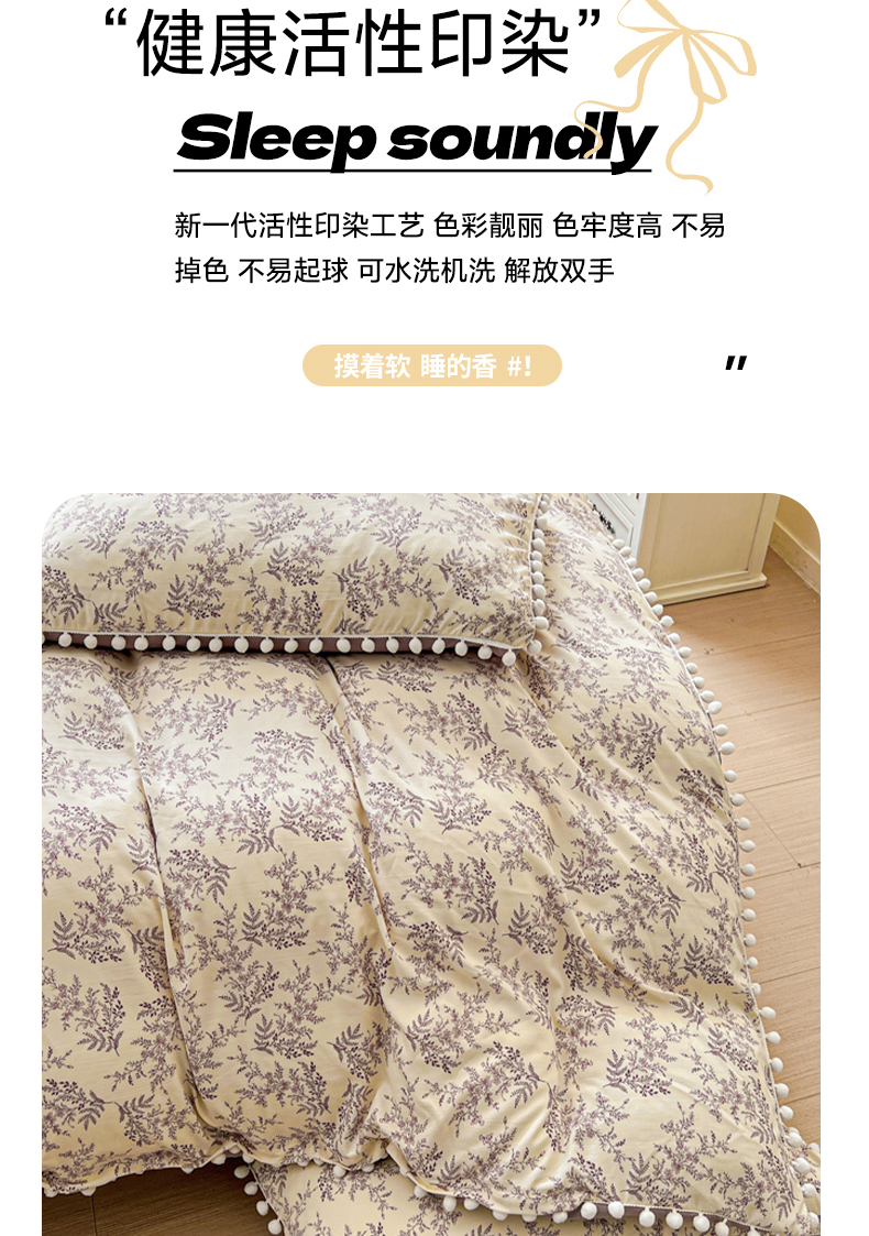 商品名称:朵朵家纺 2025新款球球款云感四件套水洗棉简约风小碎花单品单被套(可定制尺寸 ) 紫颜