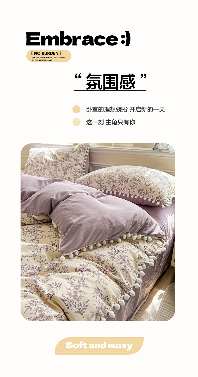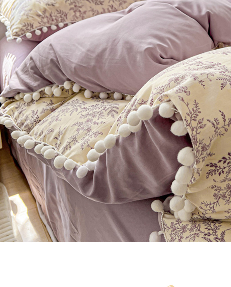 朵朵家纺 2025新款球球款云感四件套水洗棉简约风小碎花单品单被套(可定制尺寸 ) 紫颜