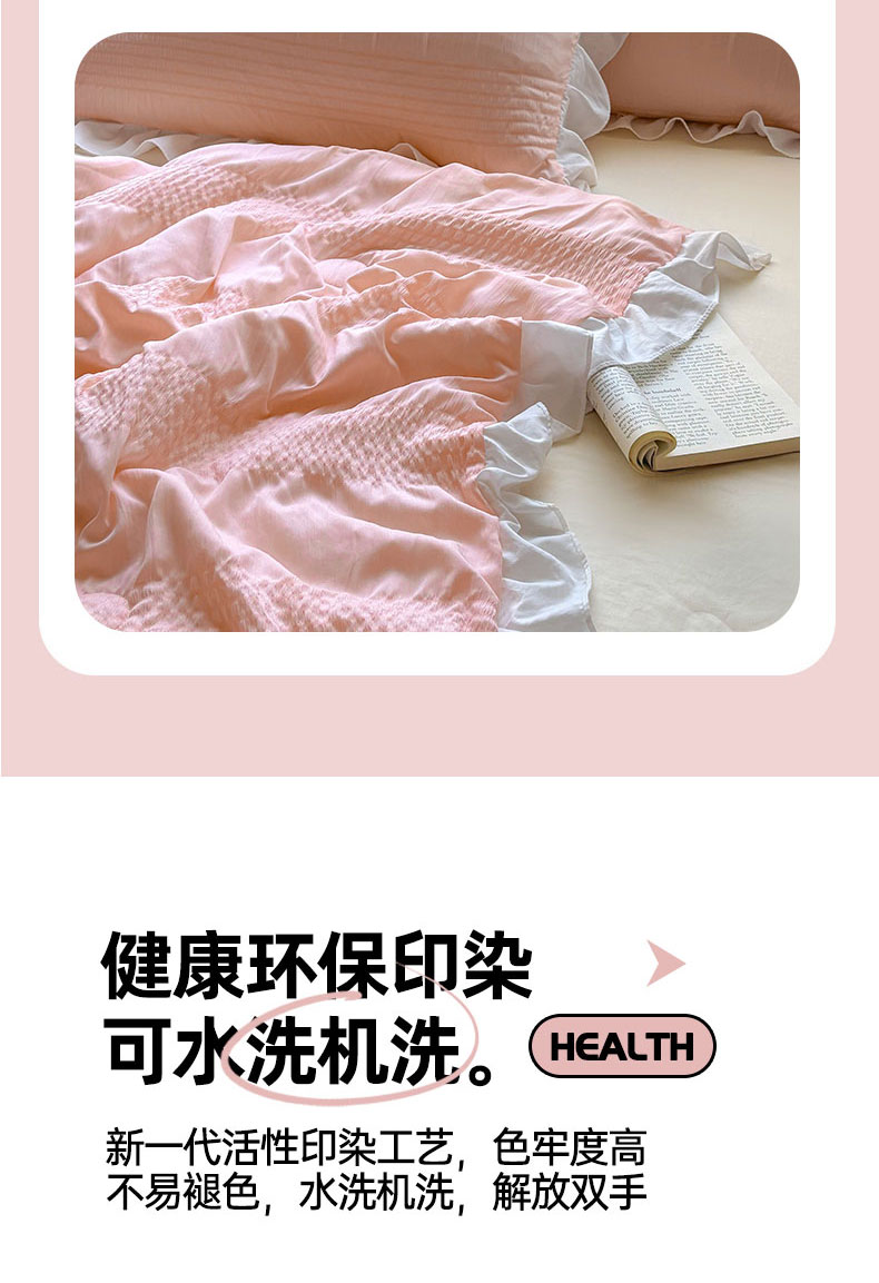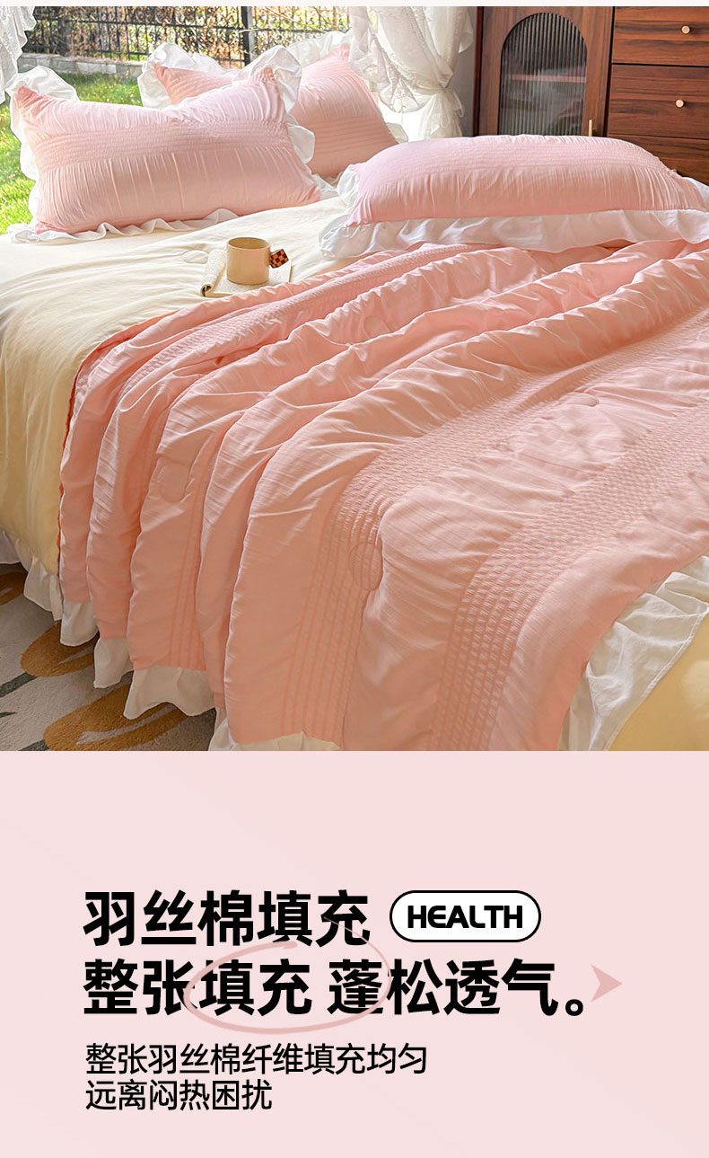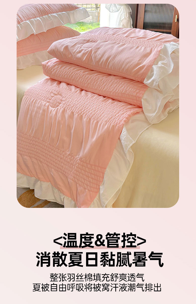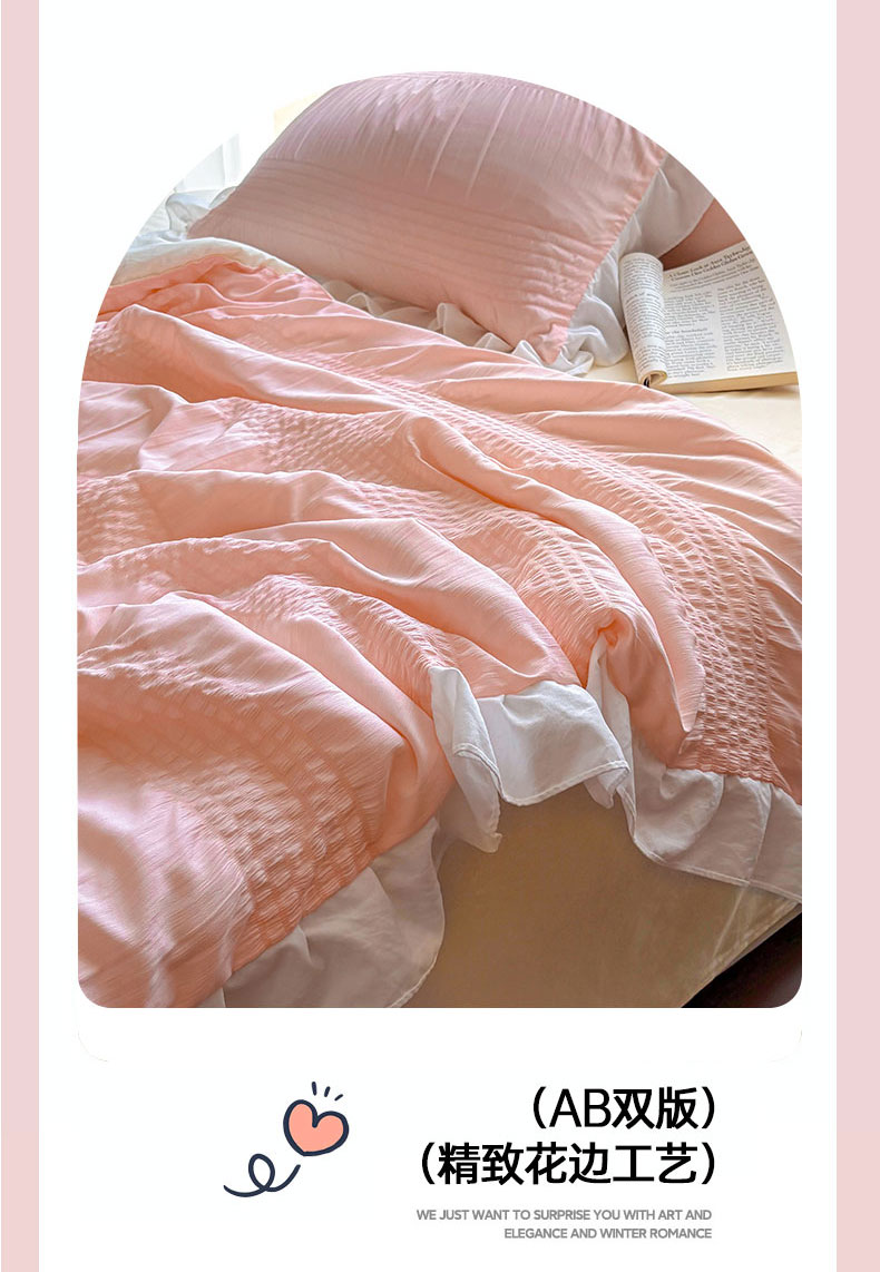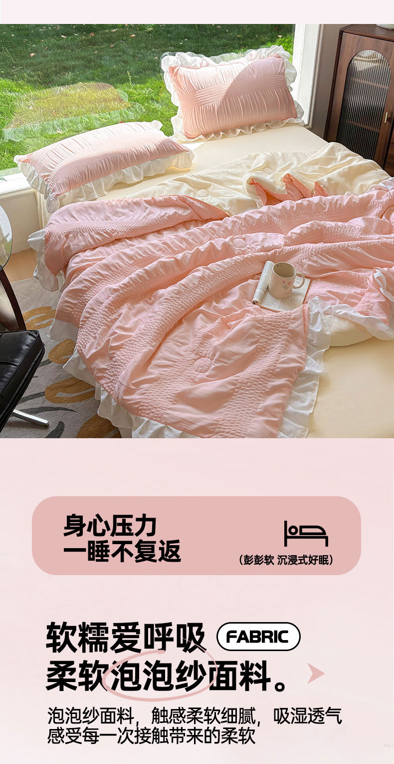 • 91家纺网 家纺一手货源 找家纺 灰鲸2025新款泡泡纱公主风花边款夏被夏凉被空调被四件套系列 泡泡纱花边款-樱花粉+奶油黄