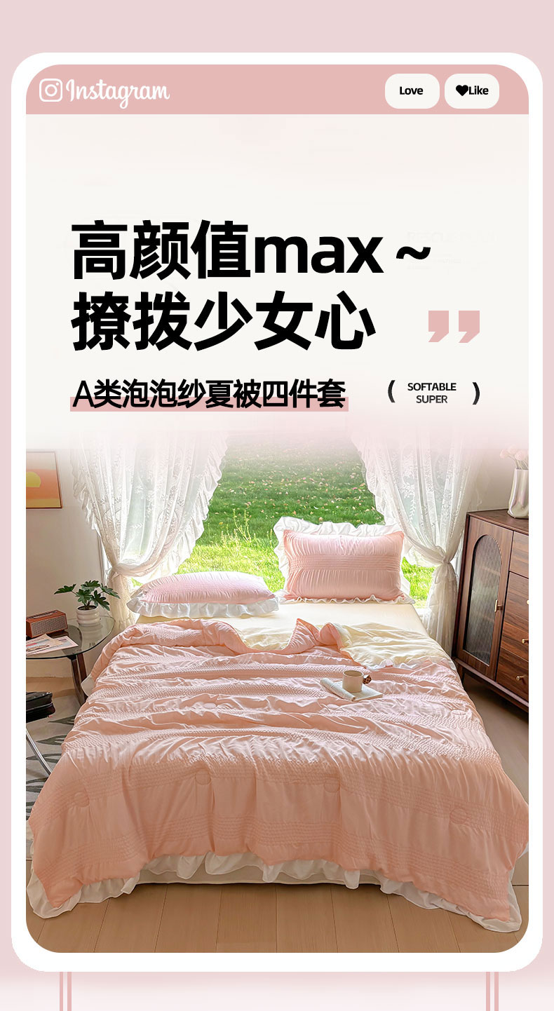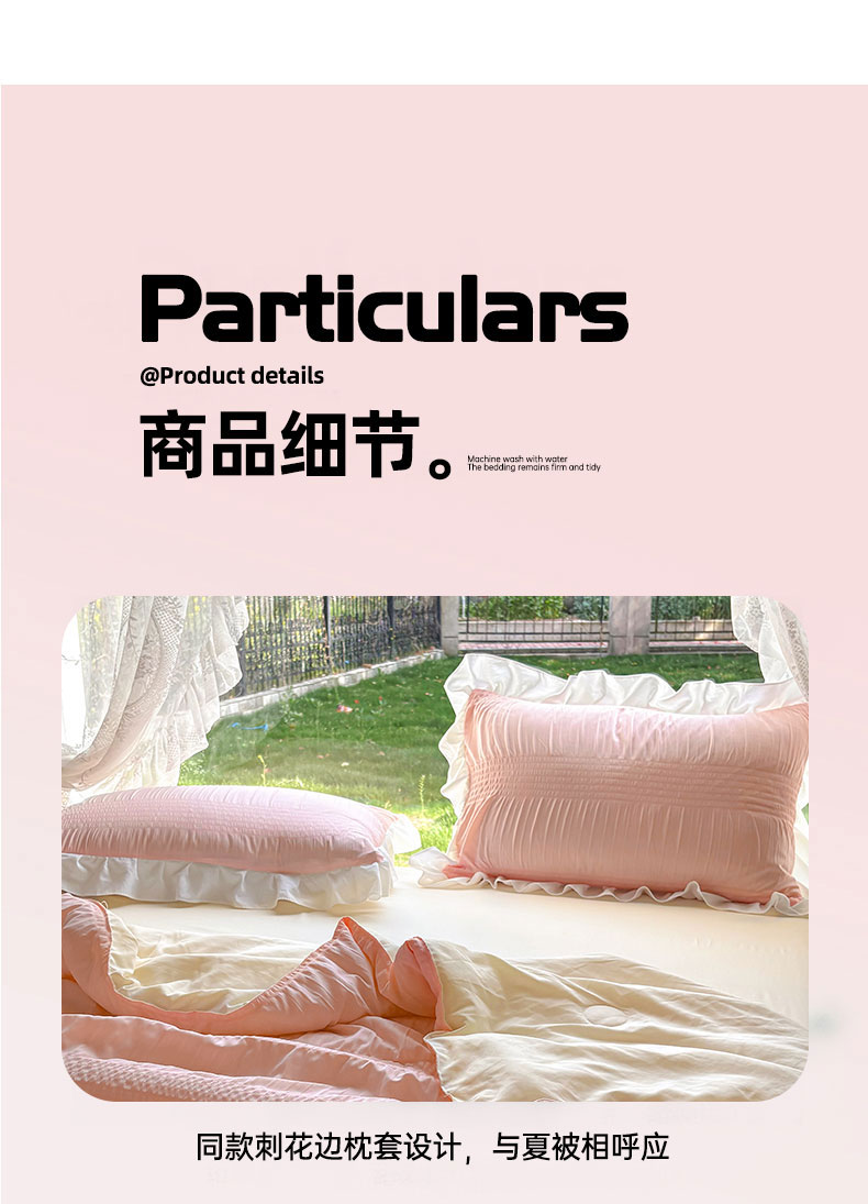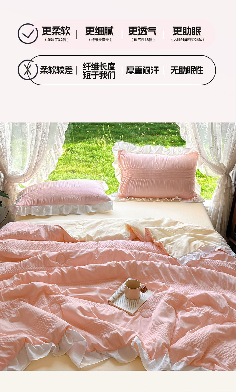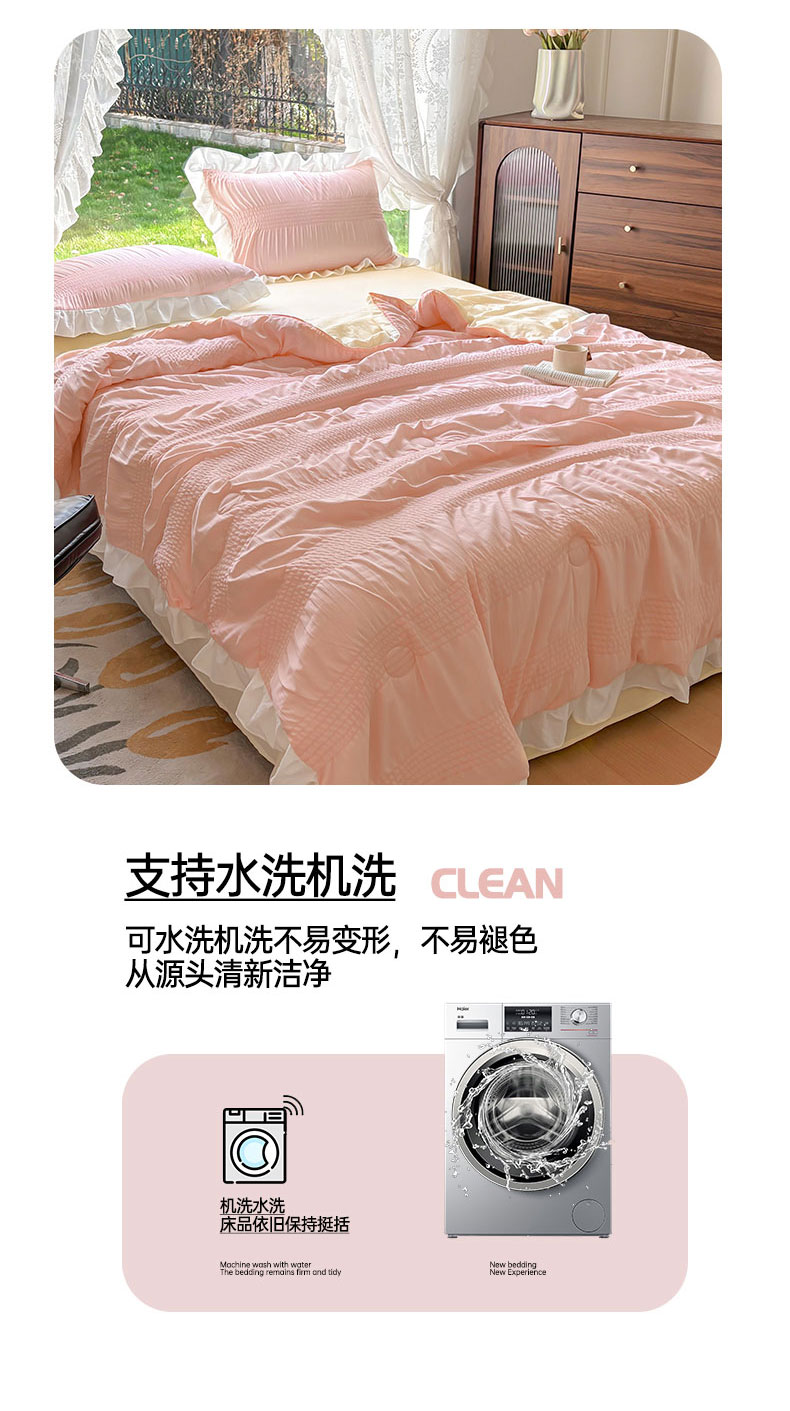 • 91家纺网 家纺一手货源 找家纺 灰鲸2025新款泡泡纱公主风花边款夏被夏凉被空调被四件套系列 泡泡纱花边款-樱花粉+奶油黄