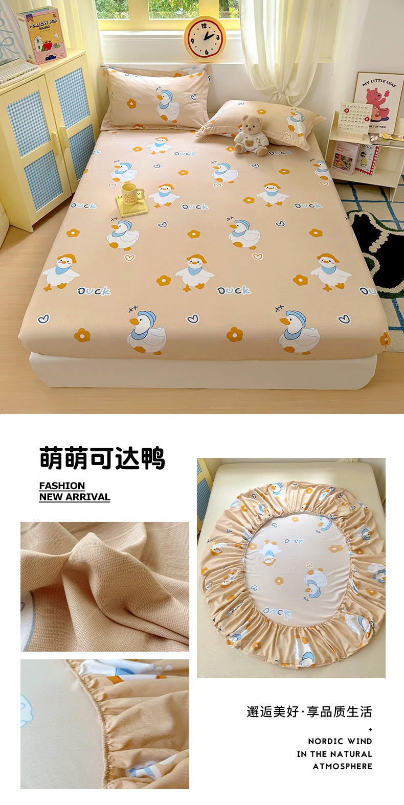 商品名称:十一家居 2025新款小清新印花款高克重加厚升级款云朵棉水洗棉床笠 黄色小熊
