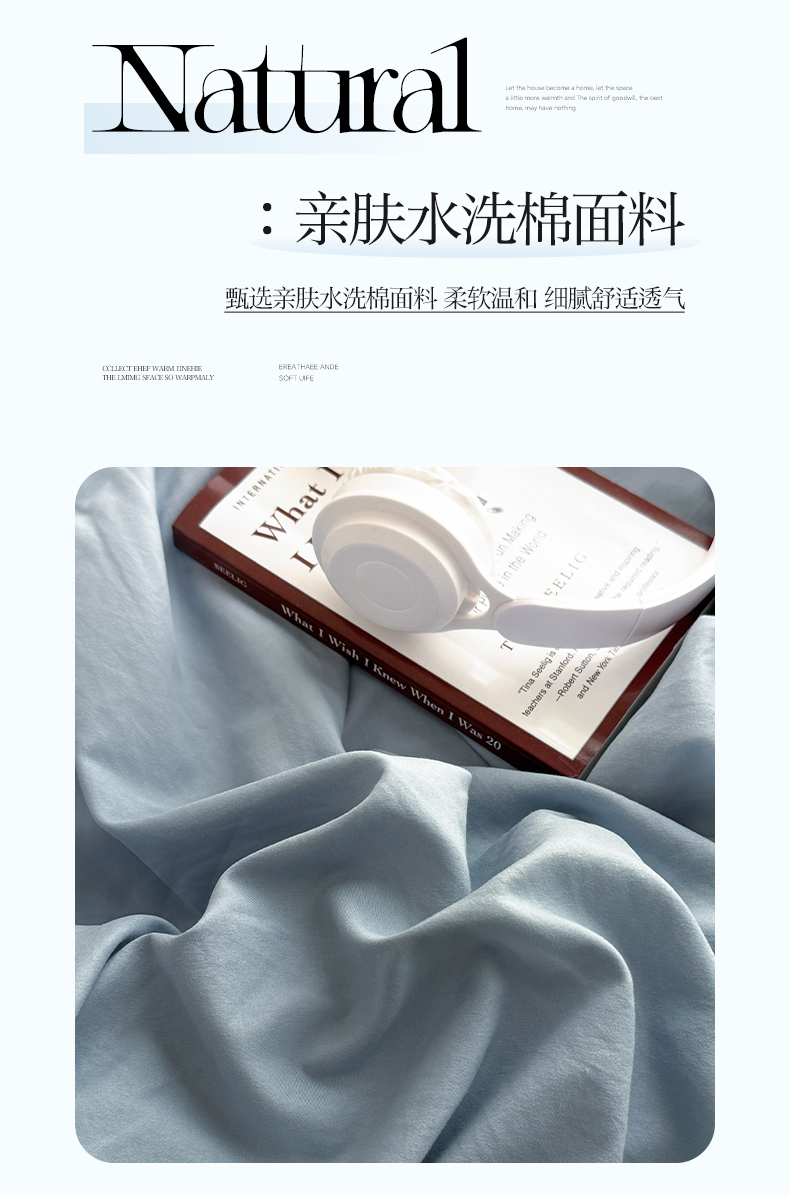 (总)十一家居 2025新款ins纯色系列亲肤水洗棉床笠,浅蓝,本白,茶咖,卡其,暖灰,深蓝,松绿,杏粉,烟灰,组合图
