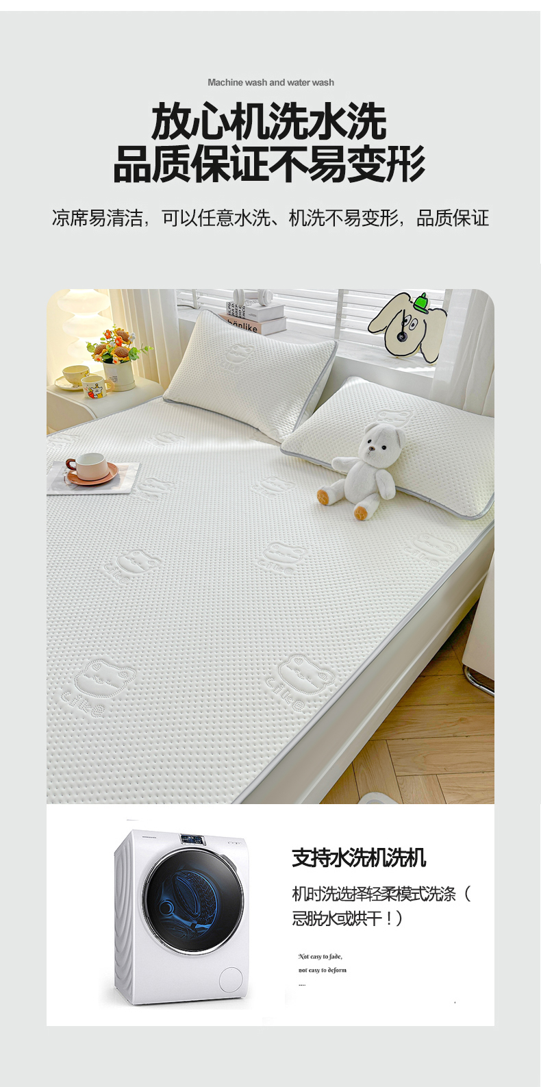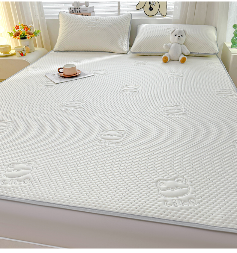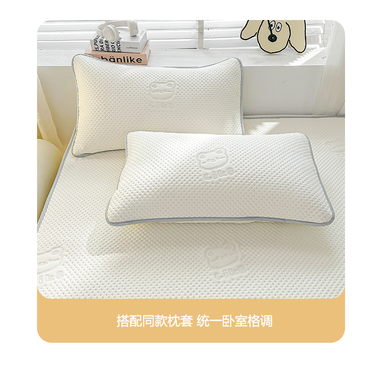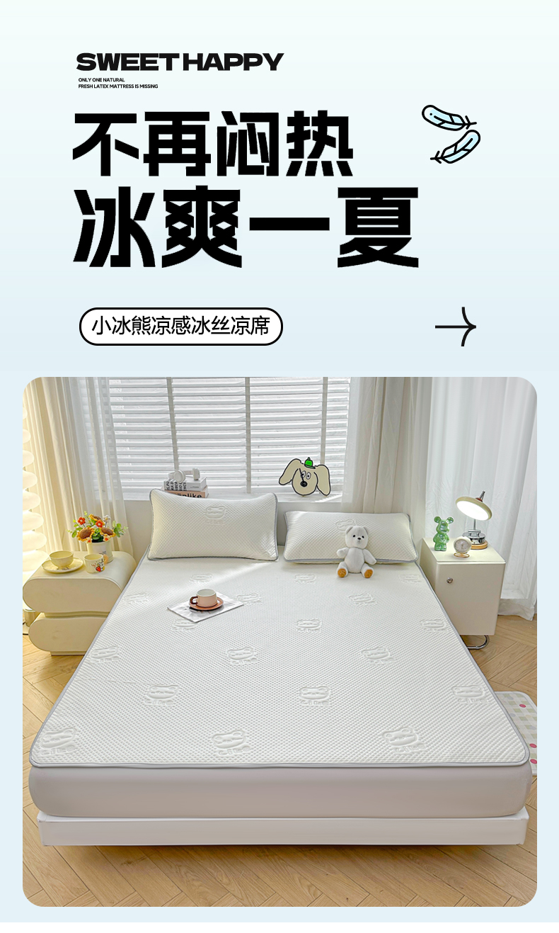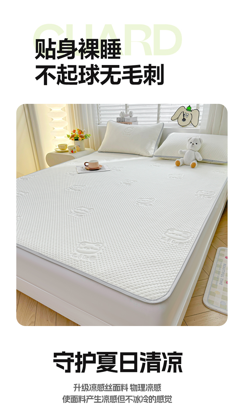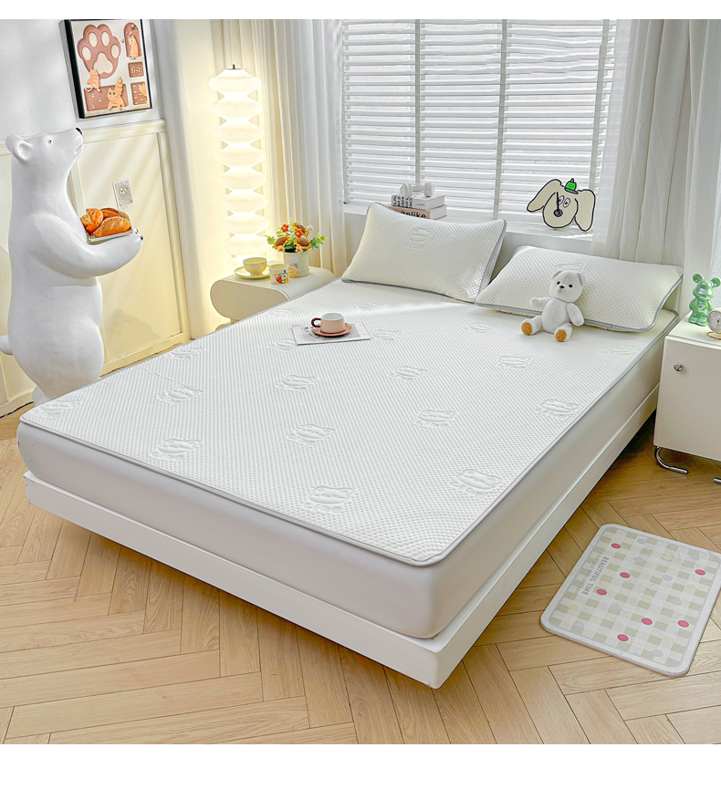 慕木2025新款A类凉感丝小冰熊云母冰丝凉席床笠夏被系列 小冰熊-奶昔白