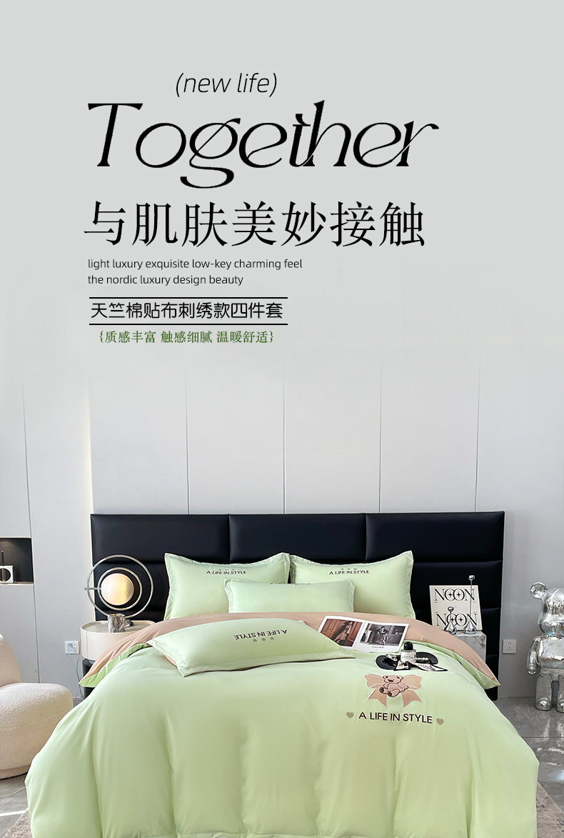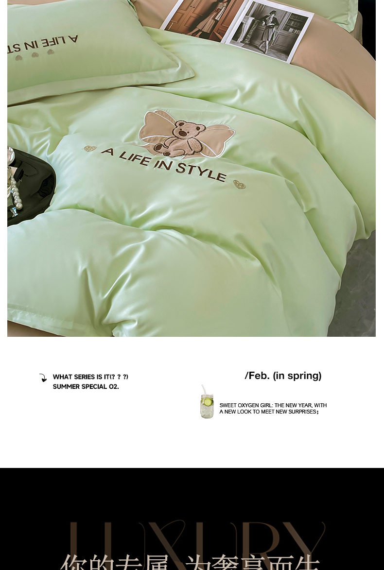 当前位置: 91家纺网 > 商品网购 > 床品套件 > 四件套 > 其它四件套 > 汣沐生活 2025新款高克重水洗天竺棉贴布刺绣款四件套 奶茶萌宝-豆沙紫+香槟