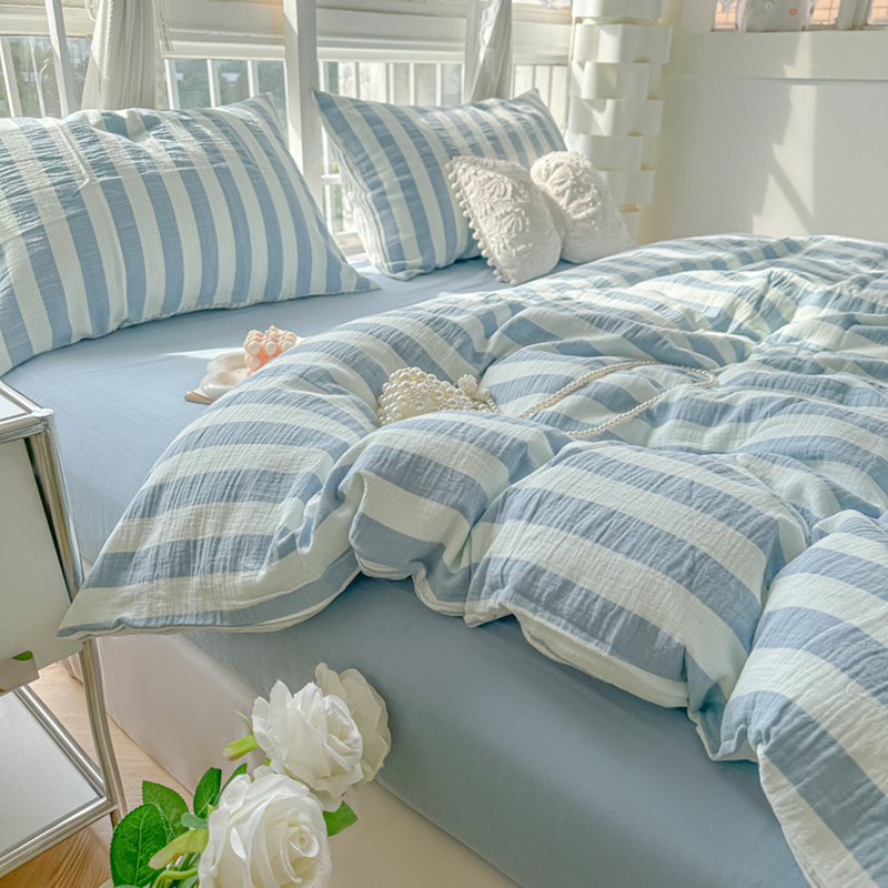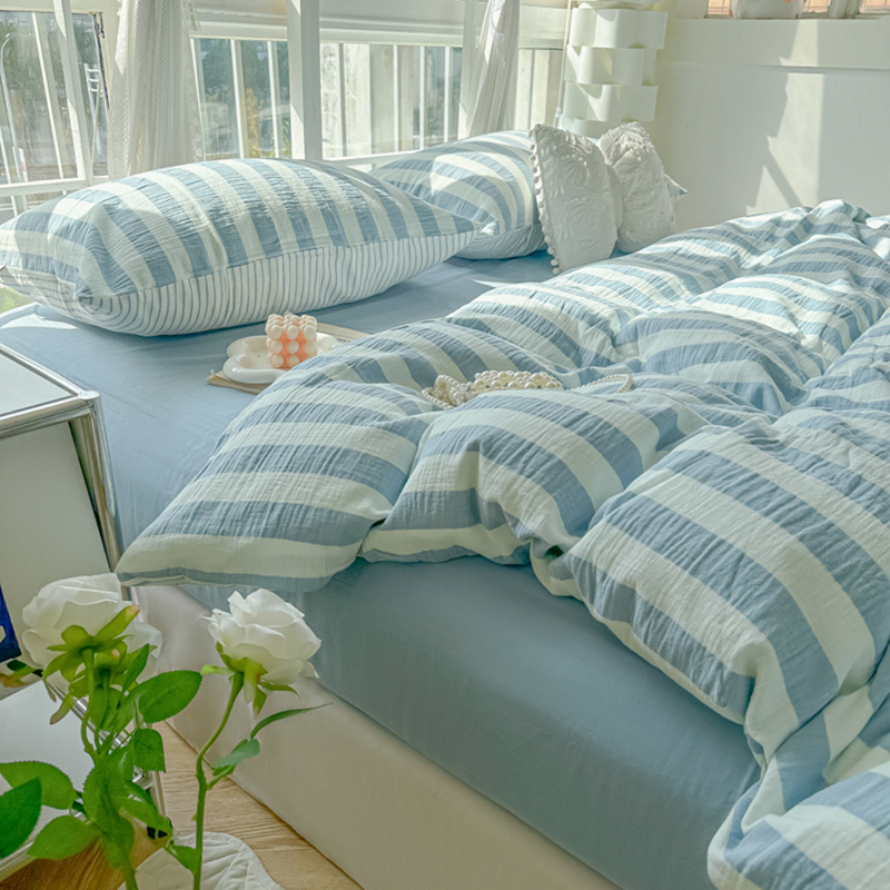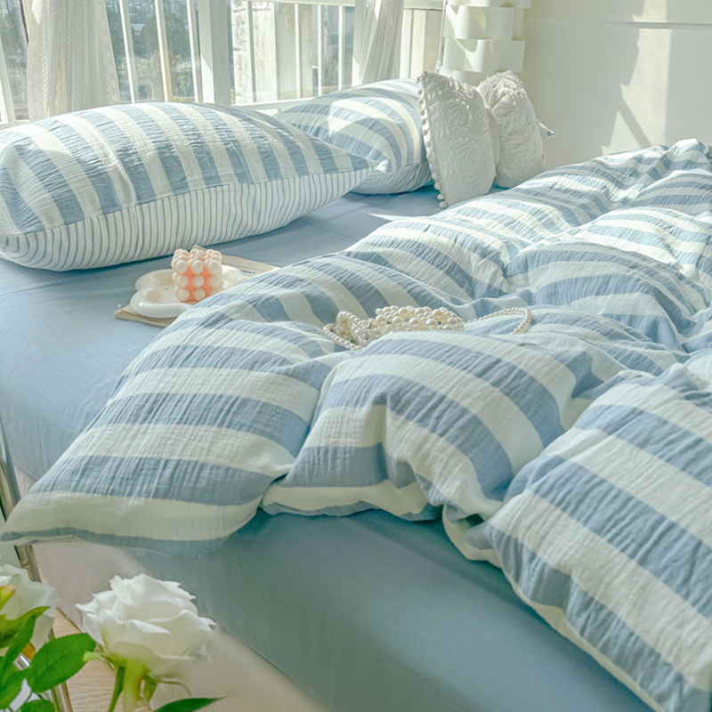 当前位置: 91家纺网 > 商品网购 > 床品套件 > 四件套 > 水洗棉四件套 > 悦织湾家纺 2025新款水洗棉亲肤云朵条纹四件套 云朵条纹蓝灰