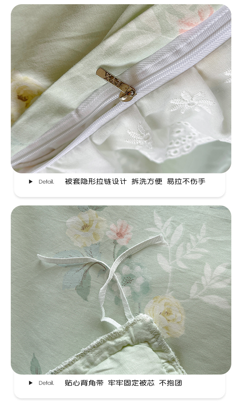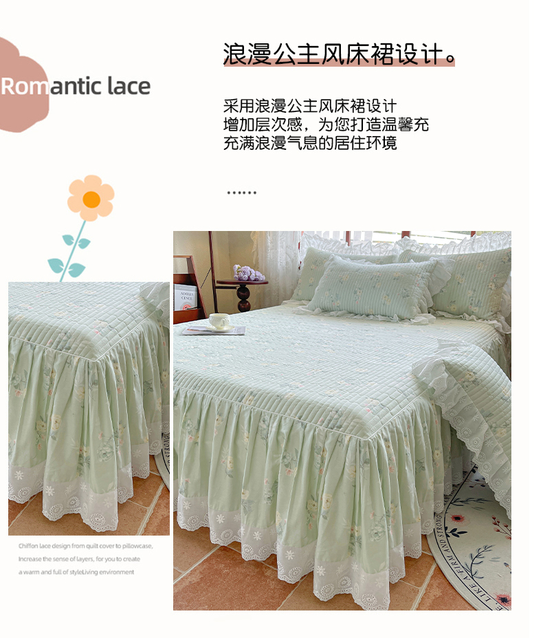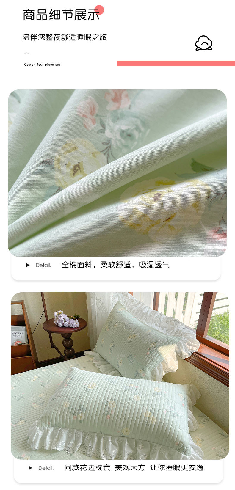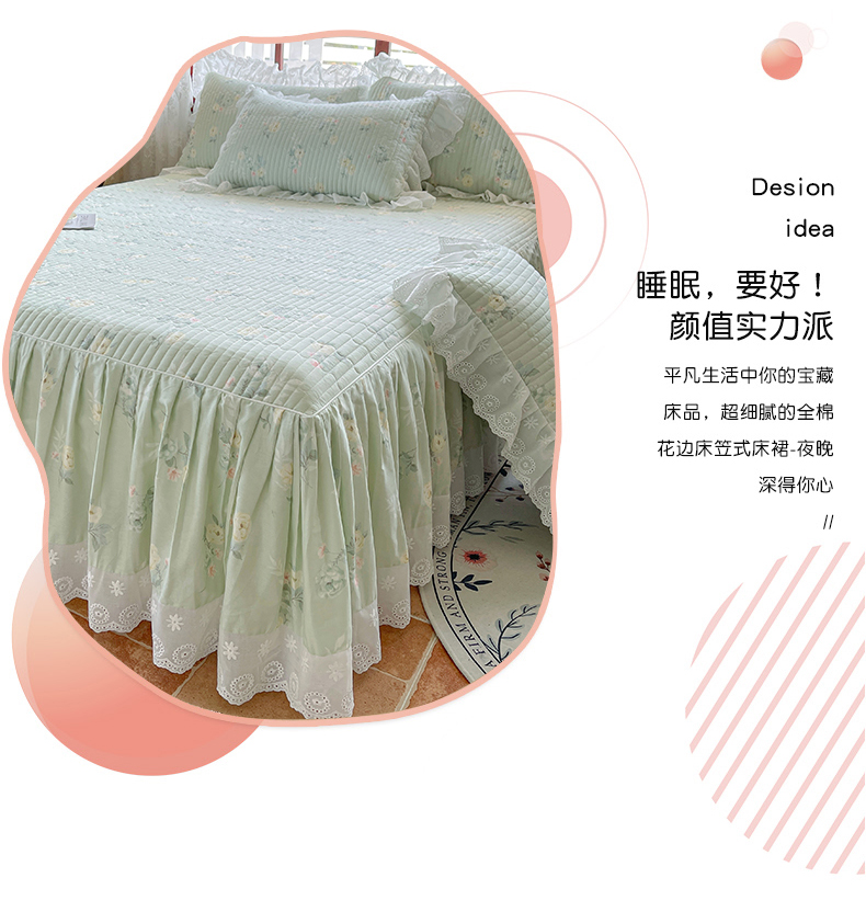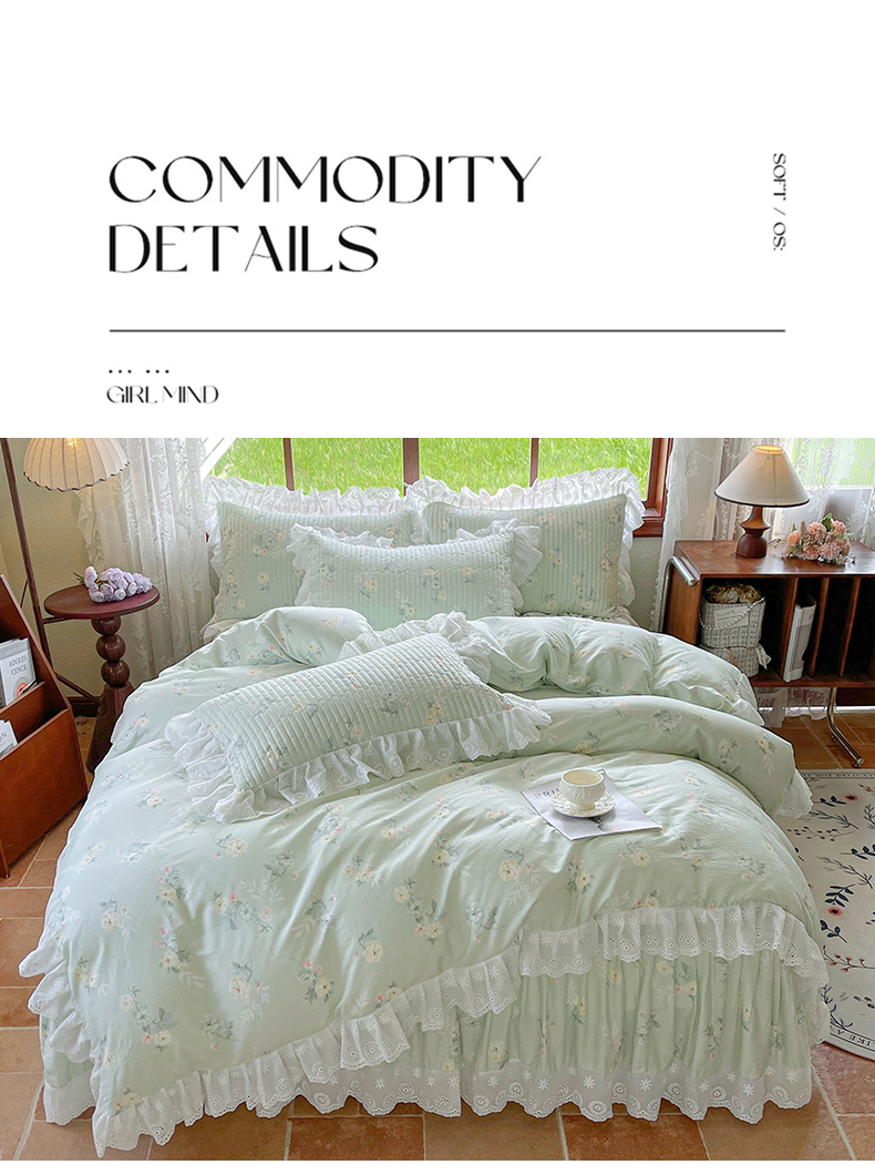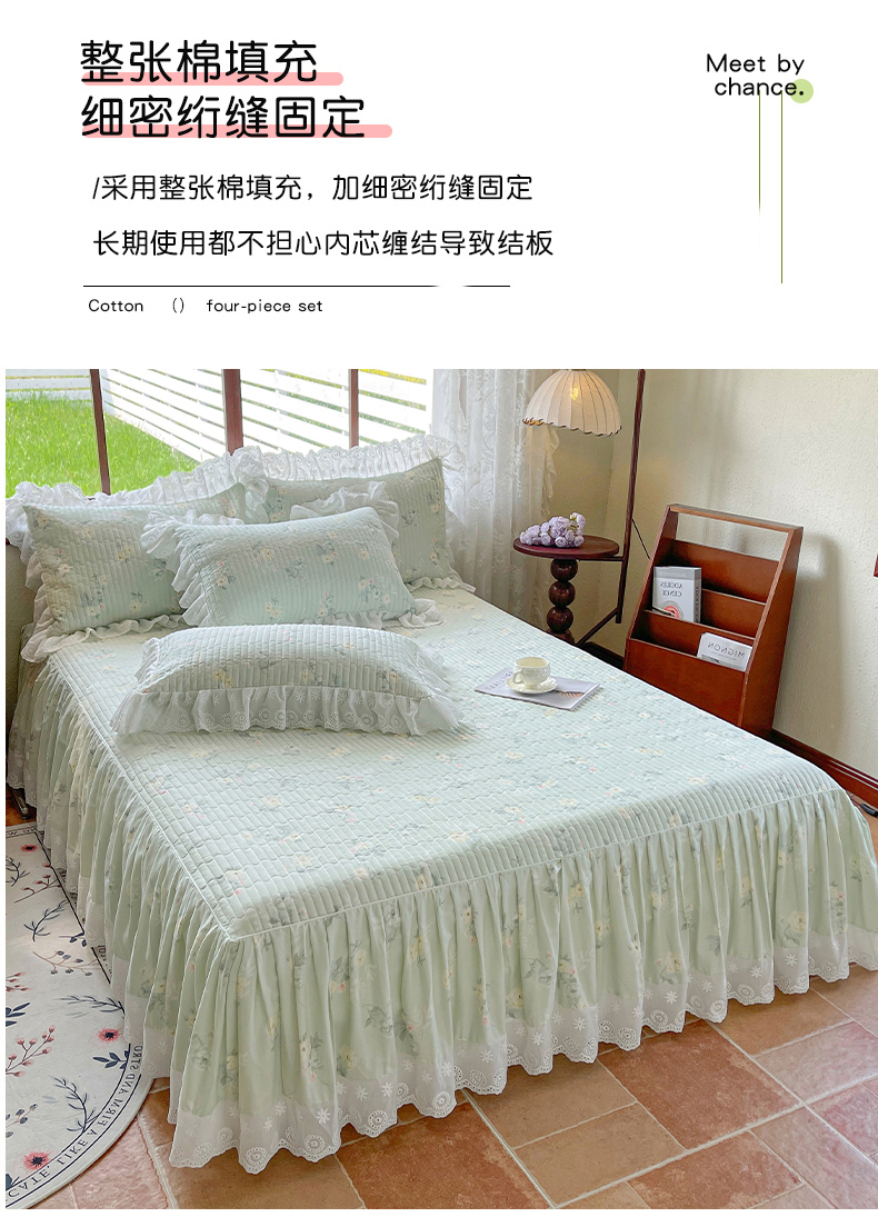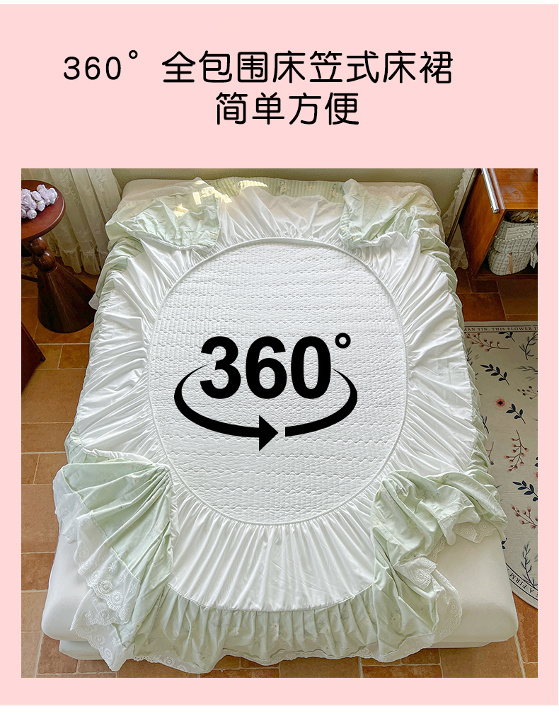 当前位置: 91家纺网 > 商品网购 > 床品套件 > 四件套 > 全棉普通四件套 > 罗艺轩 2025新款全棉印花床笠式花边床裙四件套 茉莉清雨