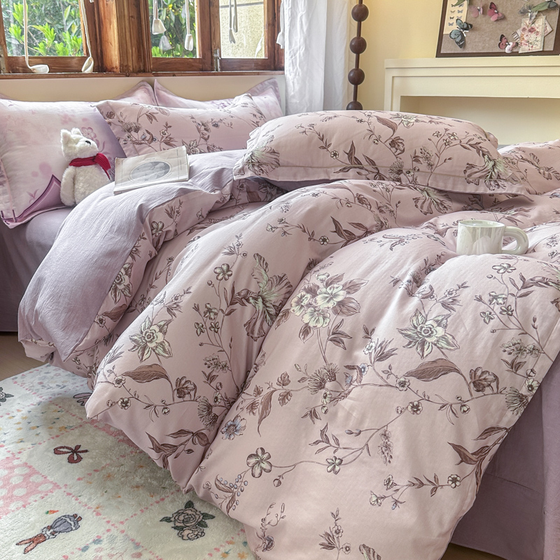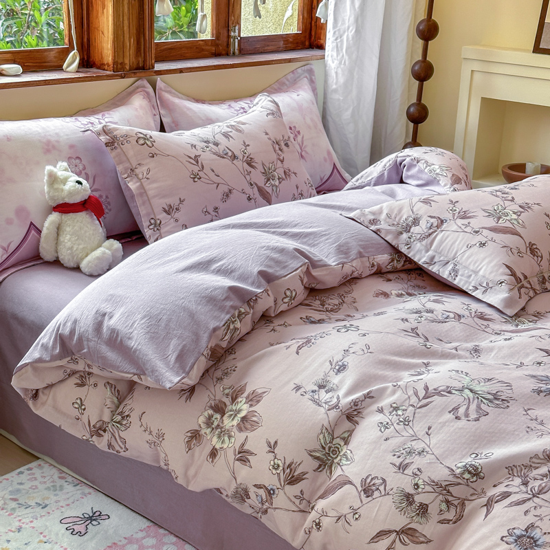 喜四方 2024新款全棉磨毛全棉印花四件套曼迪-紫,曼迪-紫