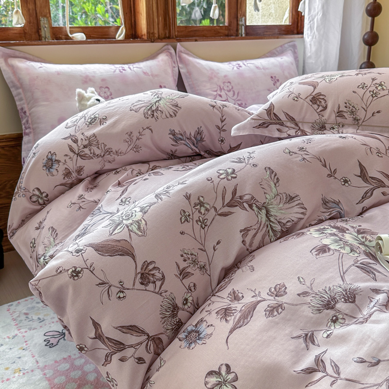 商品名称:喜四方 2025新款全棉A类母婴级抗菌全棉双层纱四件套 雅莹-粉