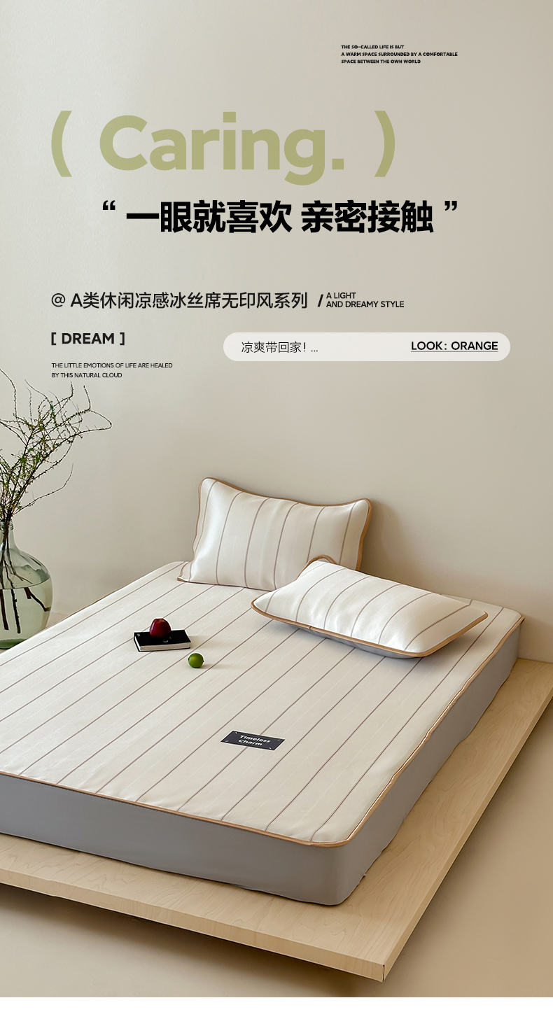 当前位置: 91家纺网 > 商品网购 > 床上用品 > 凉席 > 冰丝席 > 如一2025A类休闲无印风数码印花冰丝凉感席 条纹咖-床笠
