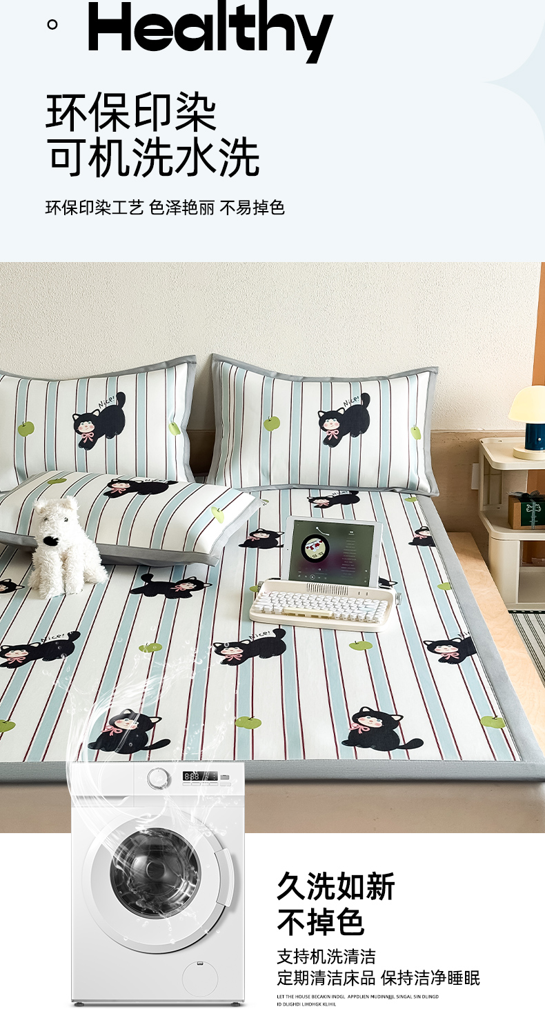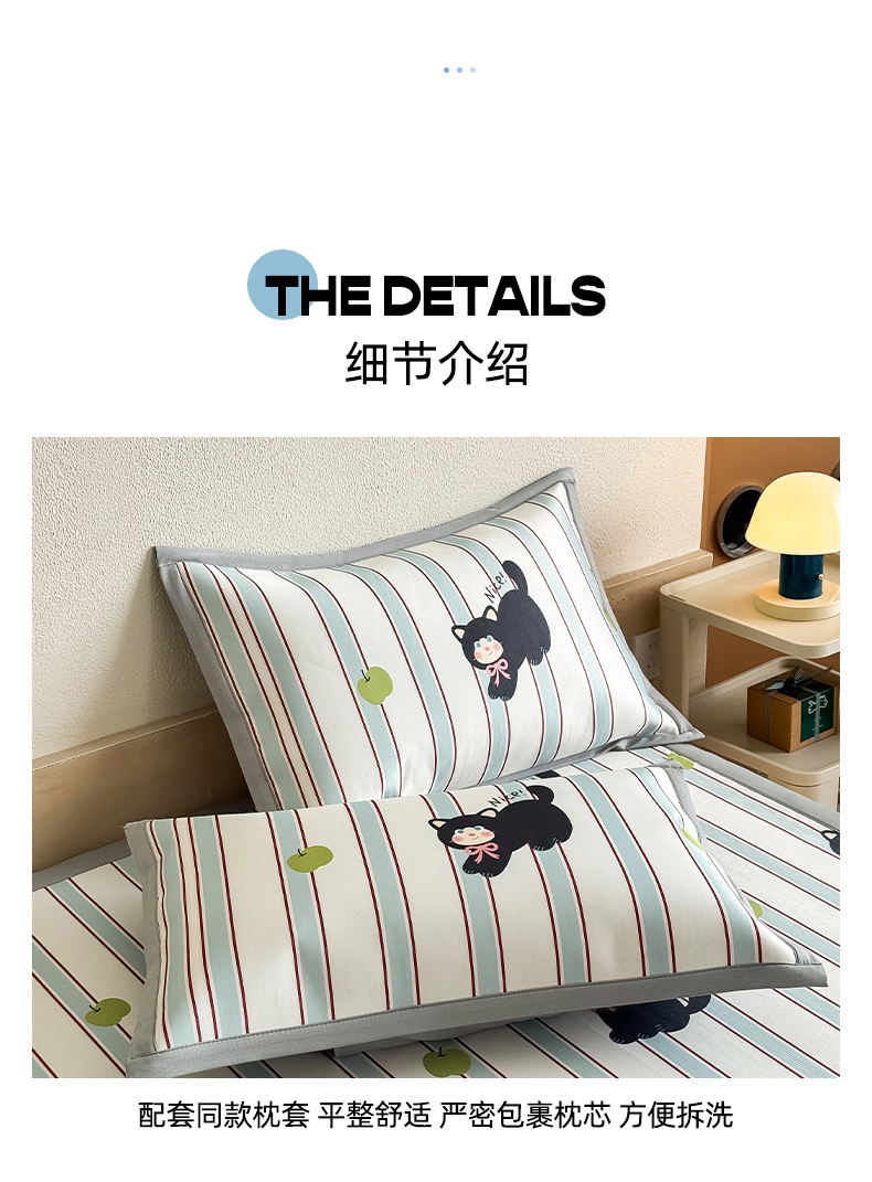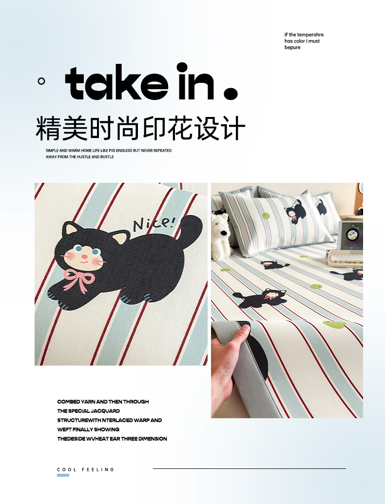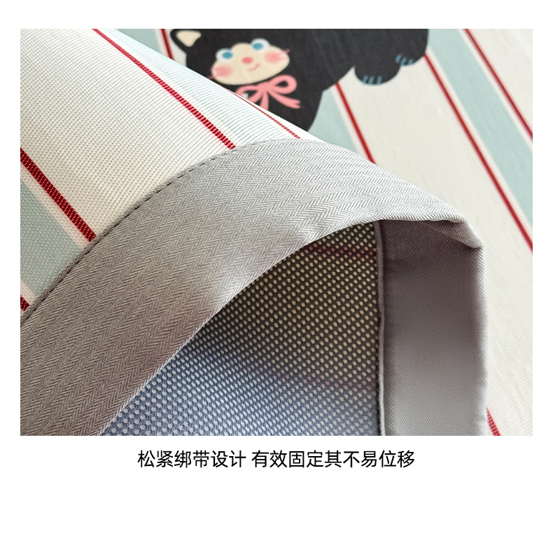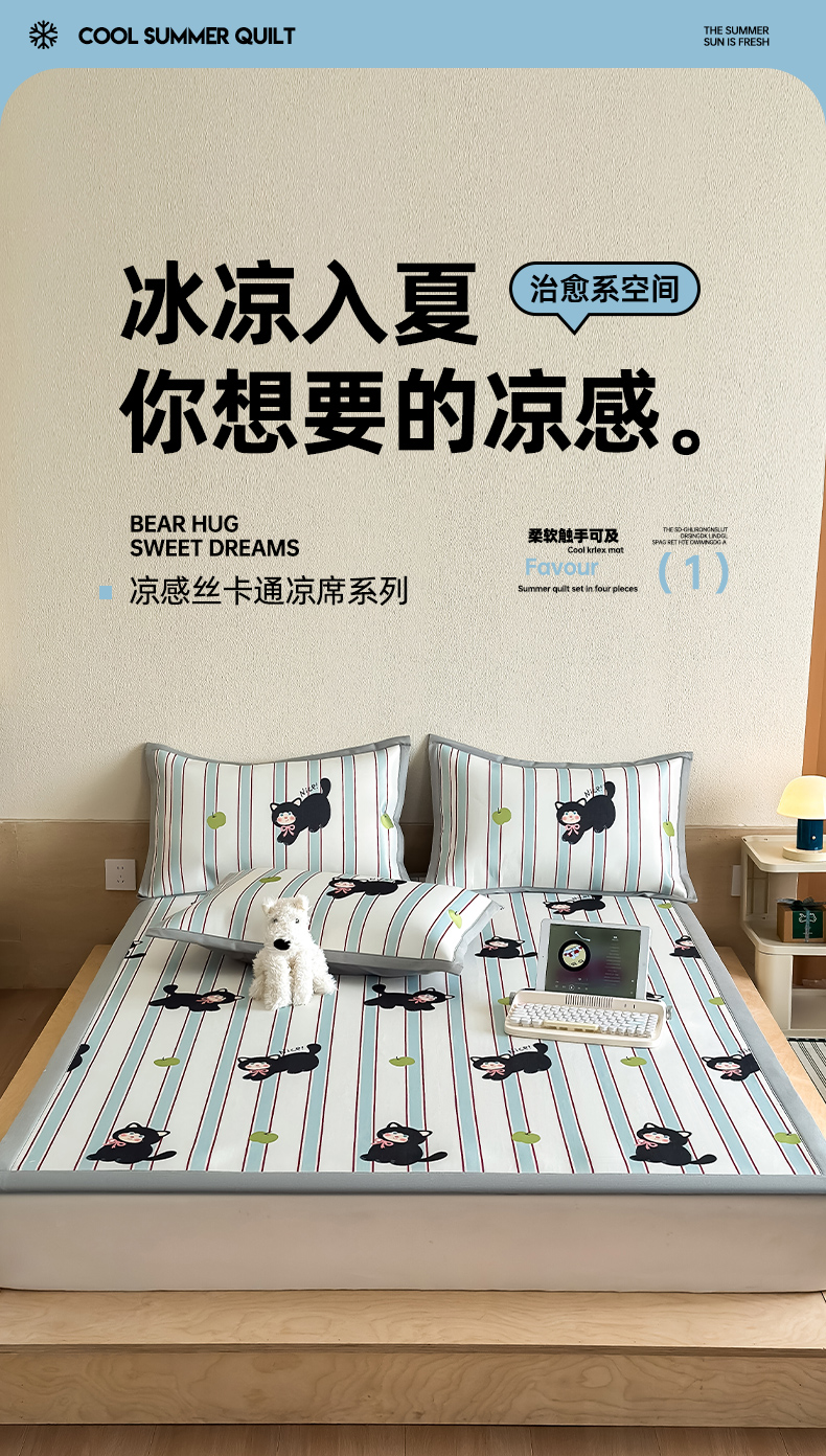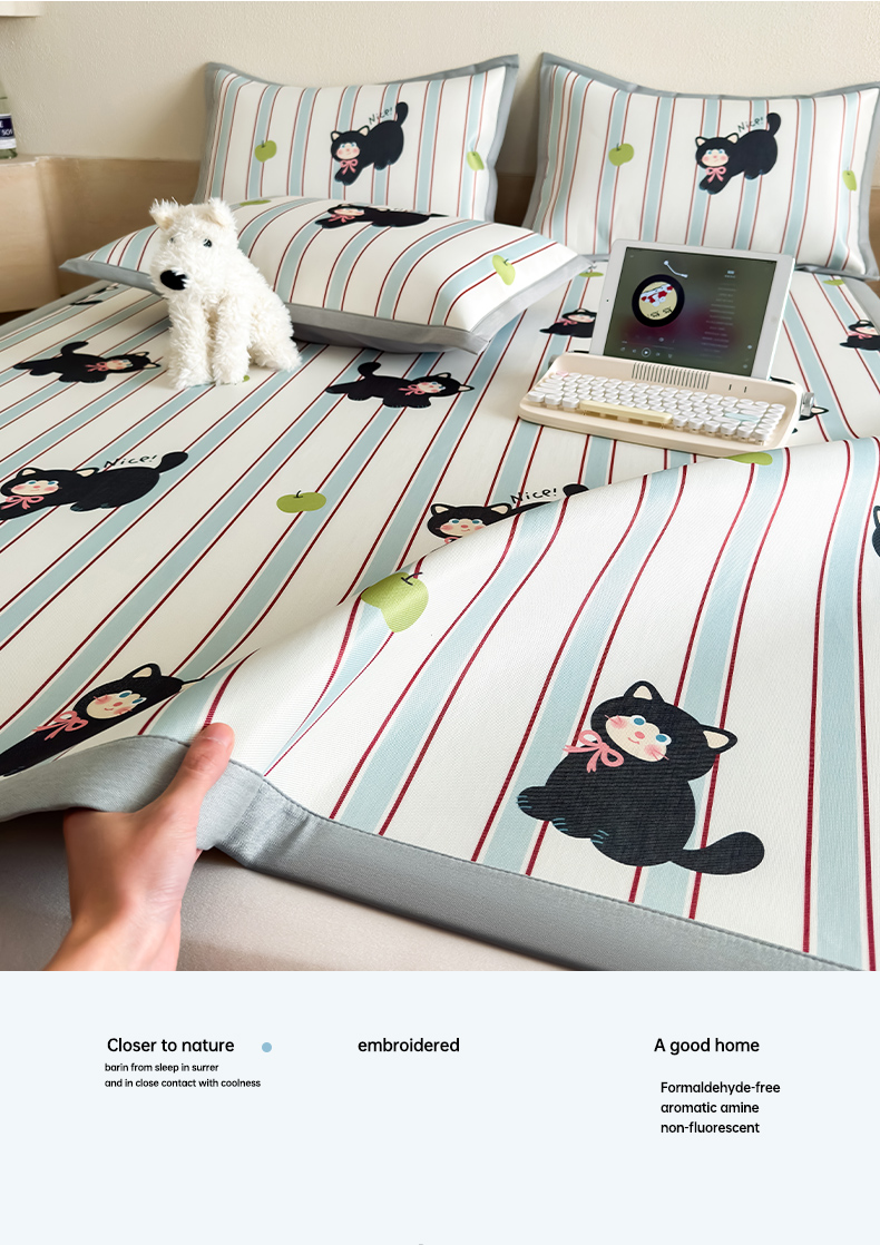 商品名称:全季家居 2025新款日韩竖条风格卡通冰丝席 淘气猫