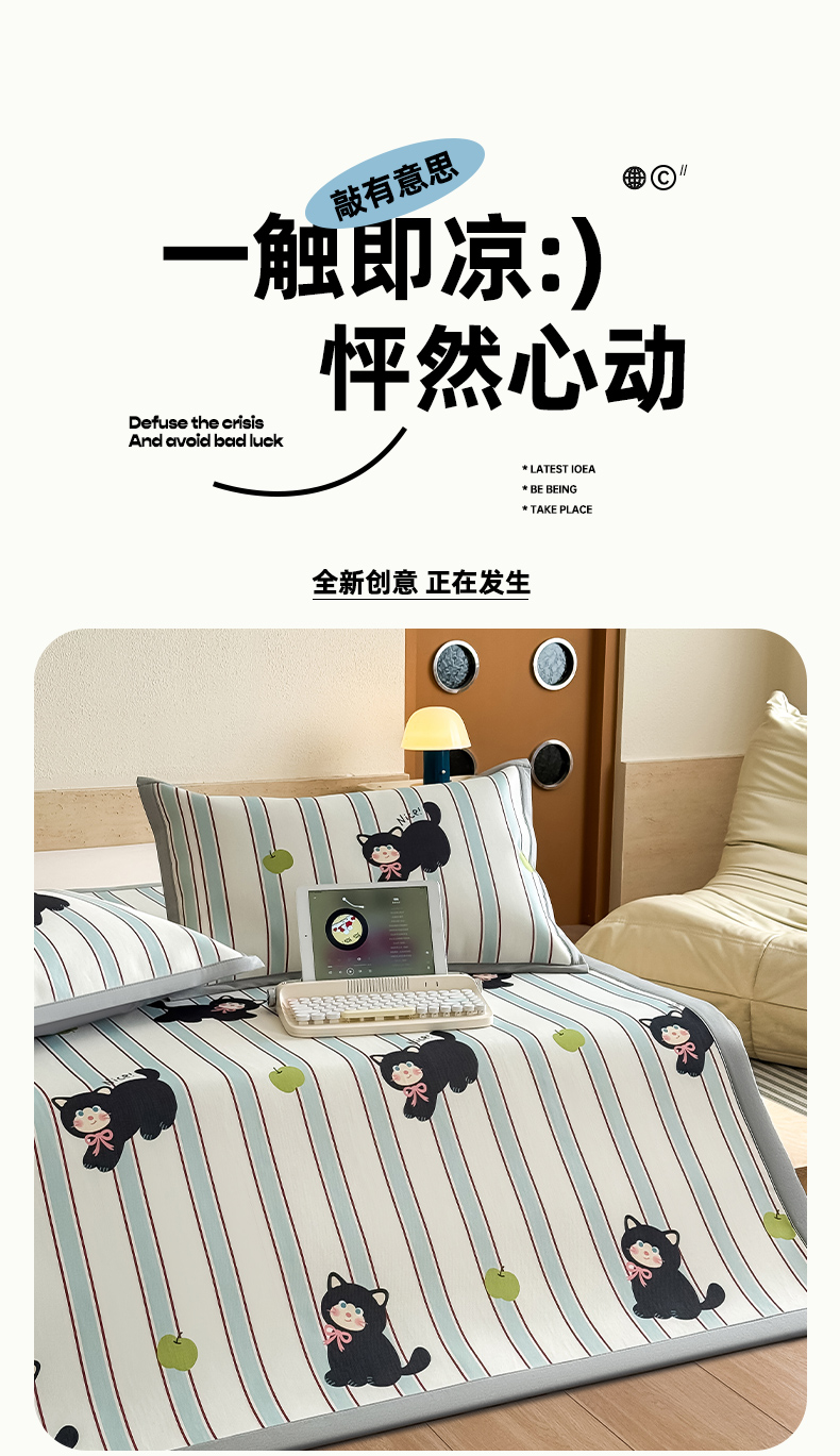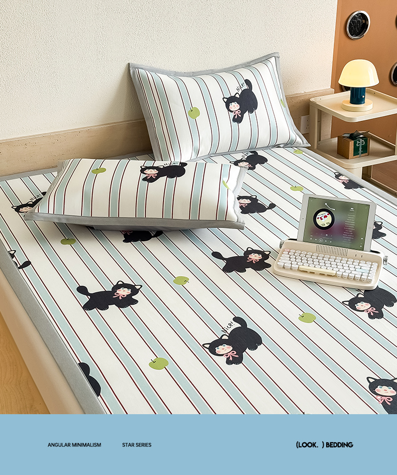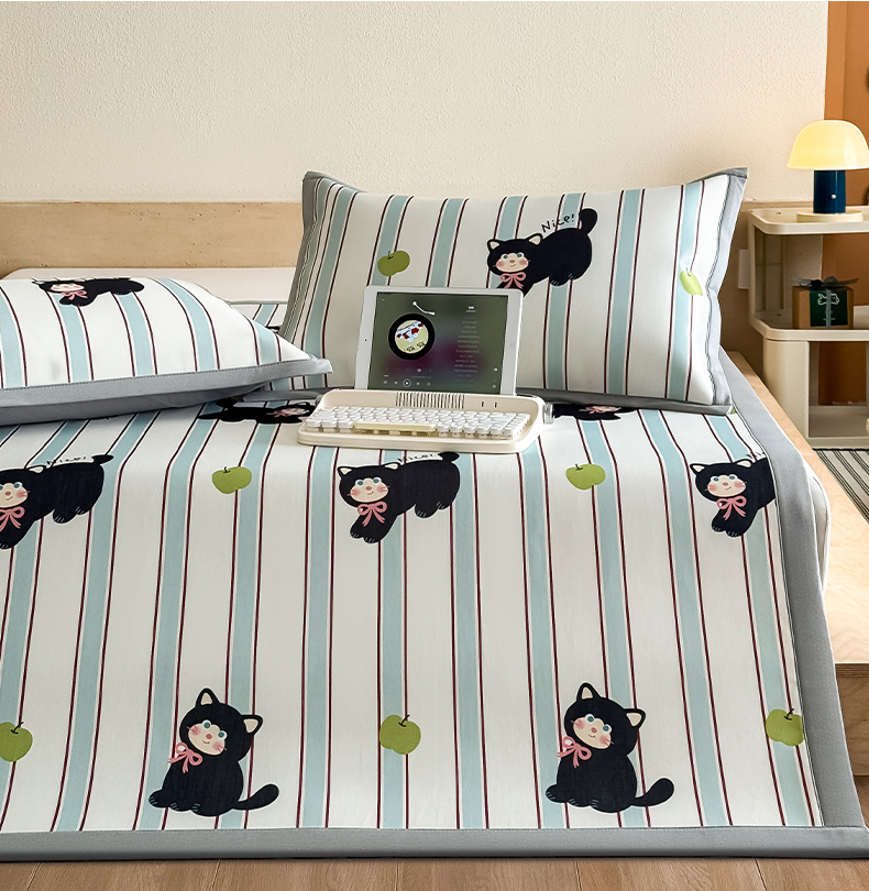 全季家居 2025新款日韩竖条风格卡通冰丝席 淘气猫
