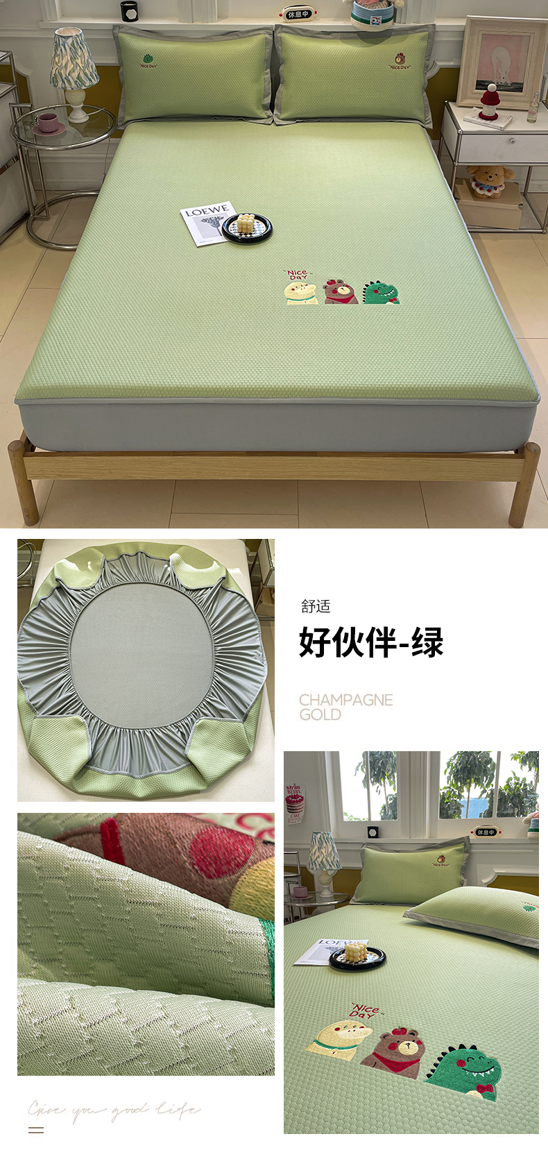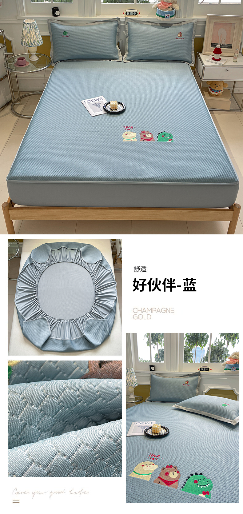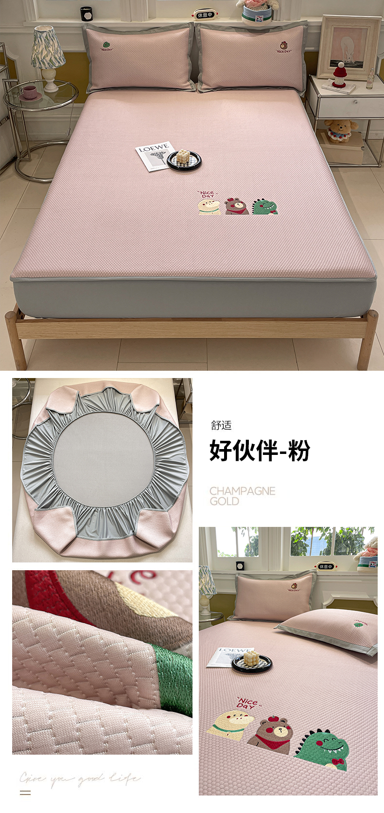 启程家纺 2025新款凉豆豆复合三明治刺绣款凉席席子-床笠款 小香风-白-床笠款