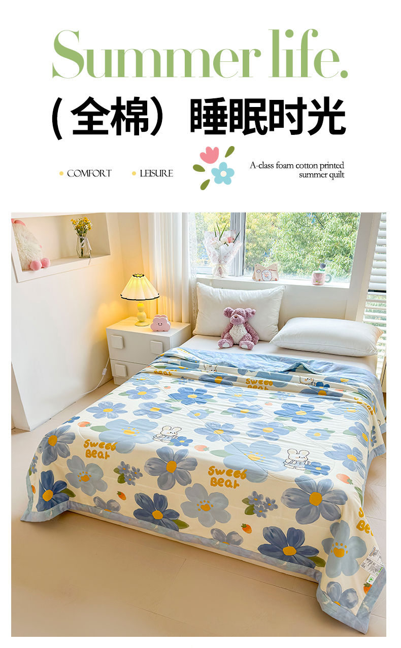 (总)小石头家纺 2025新款A类小清新纯棉印花夏被,绿蔓,碎花细雨,半亩花田,粉黛佳人,可爱熊猫,蓝花楹,青柠薄荷,悠然夏日,艾薇尔,碧叶粉黛,草莓粉兔,花间集-米,花涧艺-咖,简雅芬芳-米,快乐时光,蓝调格韵,梦入芬芳,阳光花语,叶语菲菲,樱桃女孩
