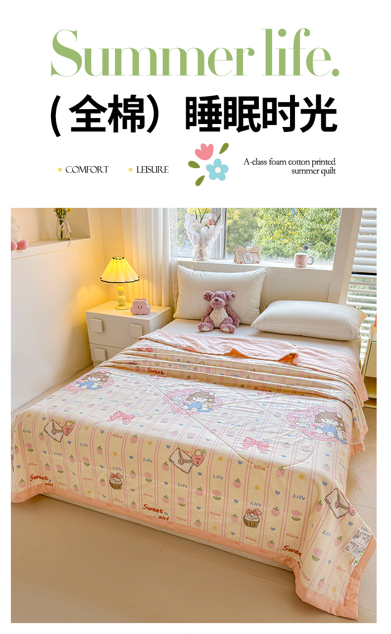 (总)小石头家纺 2025新款A类小清新纯棉印花夏被,绿蔓,碎花细雨,半亩花田,粉黛佳人,可爱熊猫,蓝花楹,青柠薄荷,悠然夏日,艾薇尔,碧叶粉黛,草莓粉兔,花间集-米,花涧艺-咖,简雅芬芳-米,快乐时光,蓝调格韵,梦入芬芳,阳光花语,叶语菲菲,樱桃女孩