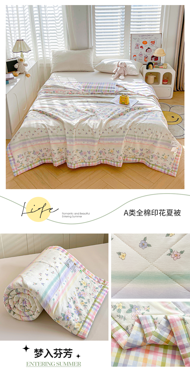 (总)小石头家纺 2025新款A类小清新纯棉印花夏被,绿蔓,碎花细雨,半亩花田,粉黛佳人,可爱熊猫,蓝花楹,青柠薄荷,悠然夏日,艾薇尔,碧叶粉黛,草莓粉兔,花间集-米,花涧艺-咖,简雅芬芳-米,快乐时光,蓝调格韵,梦入芬芳,阳光花语,叶语菲菲,樱桃女孩