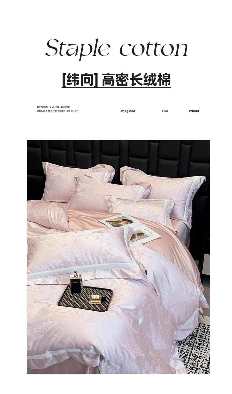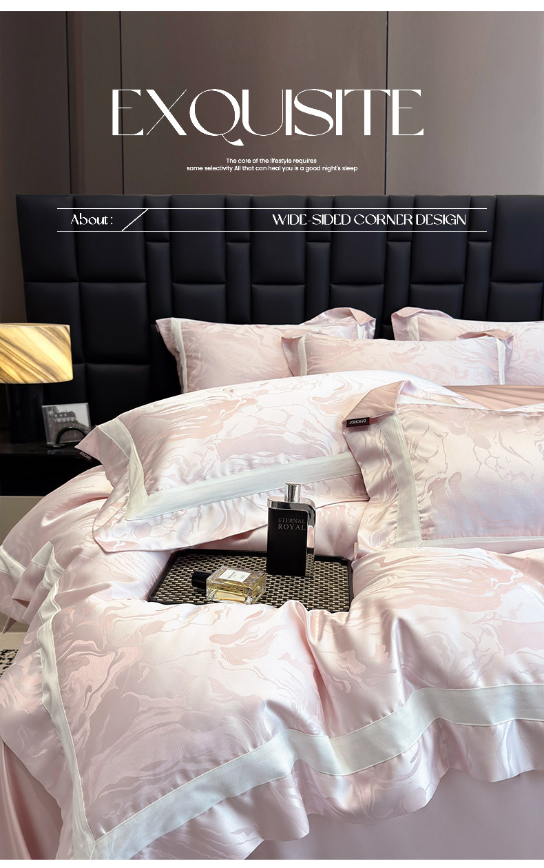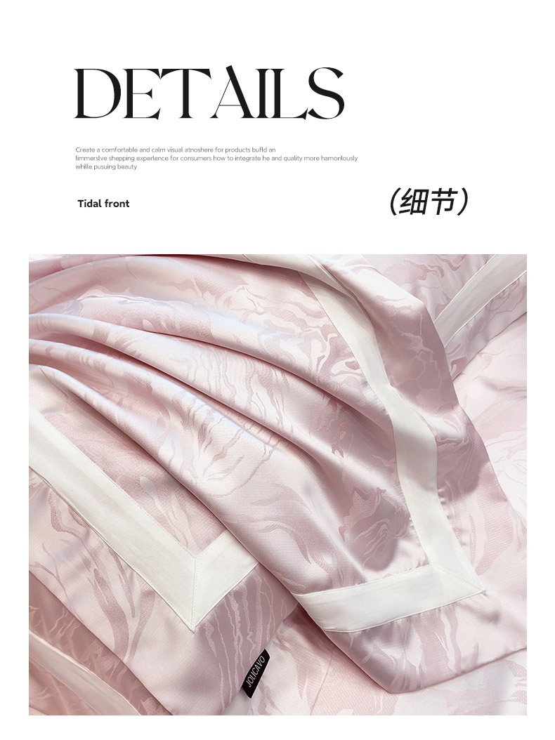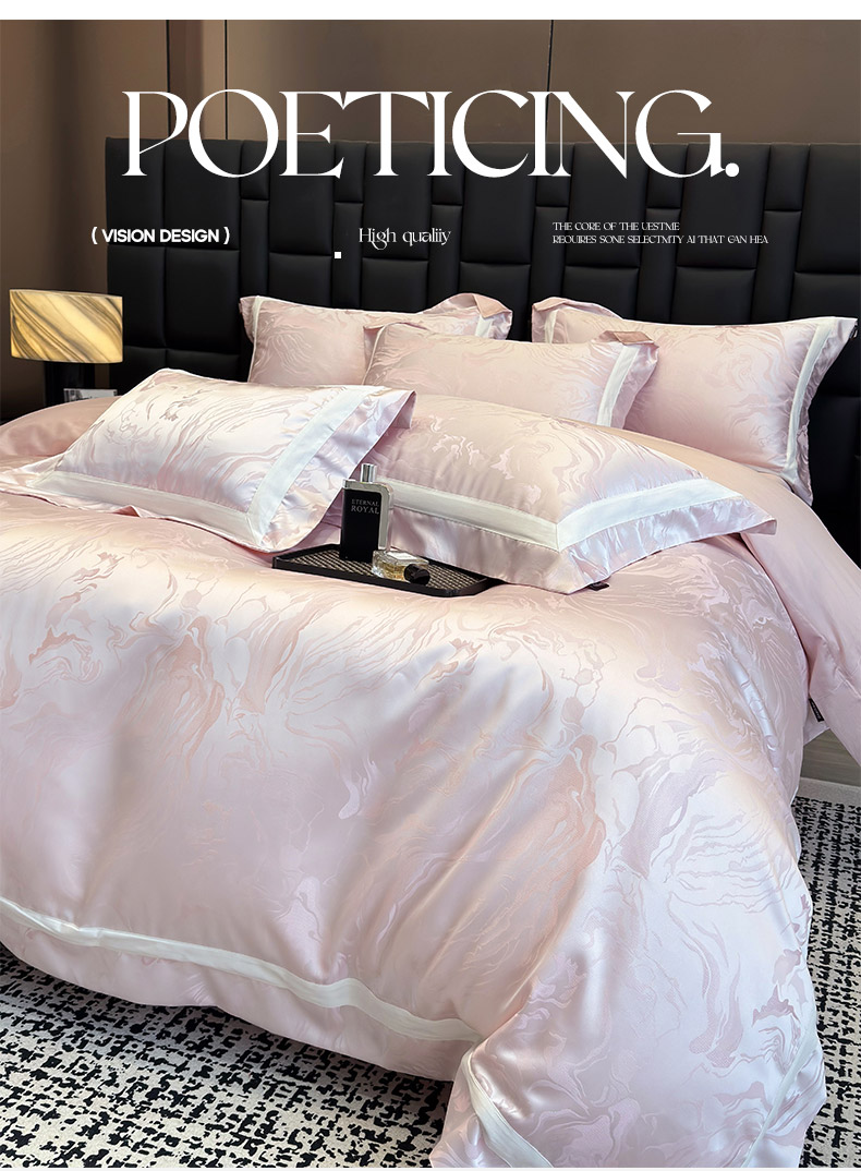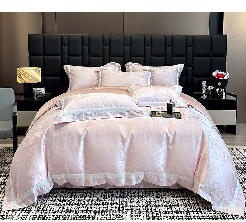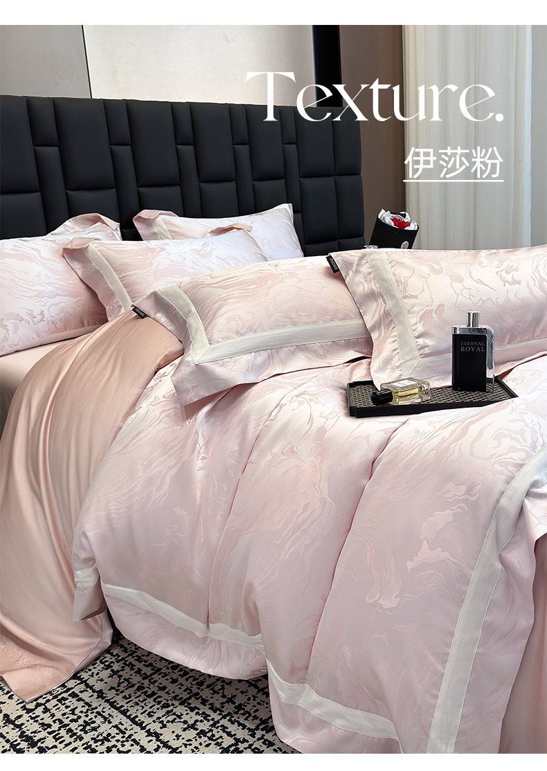 商品名称:2025新品床上用品高端A类100支天丝棉贡缎提花四件套全棉纯棉长绒棉夏季轻奢真丝全工艺 南溪-伊莎粉