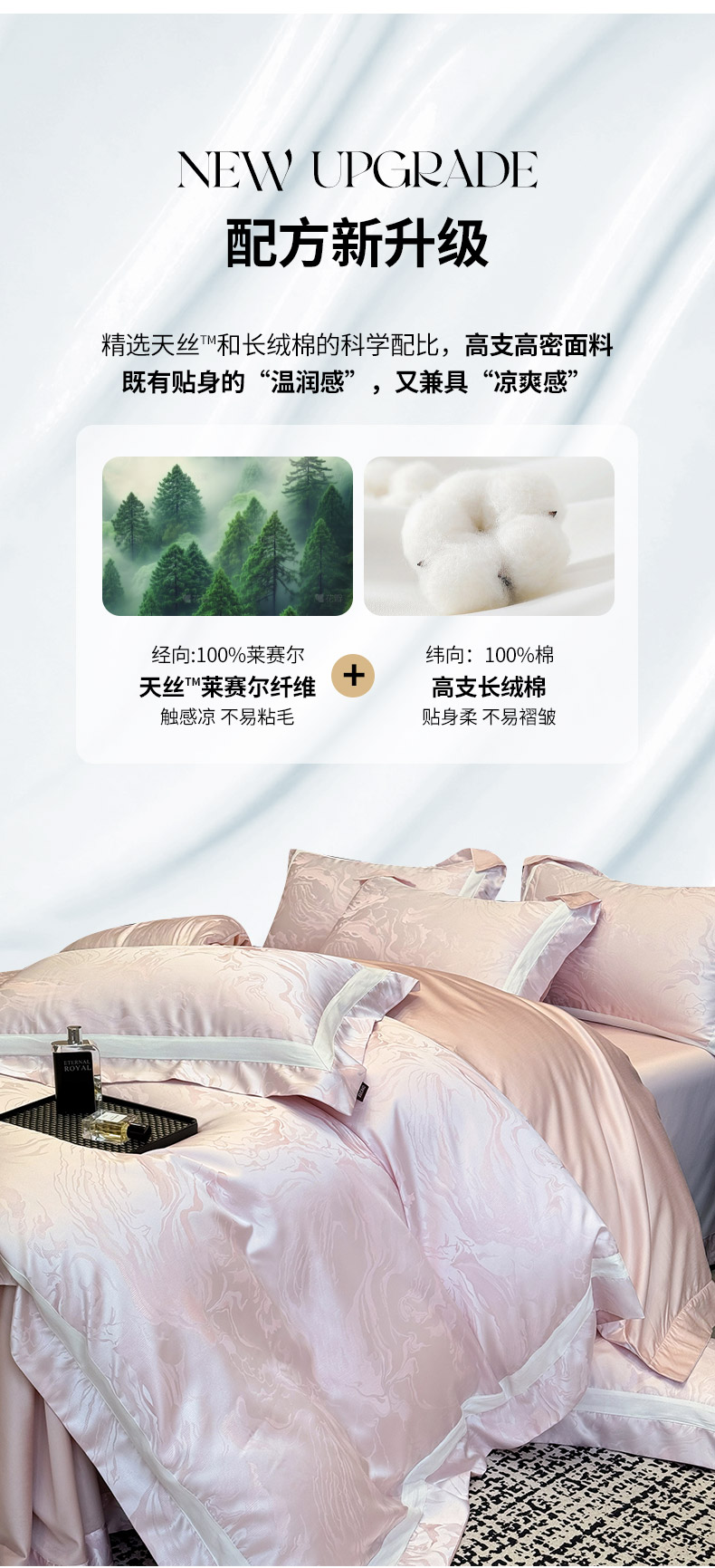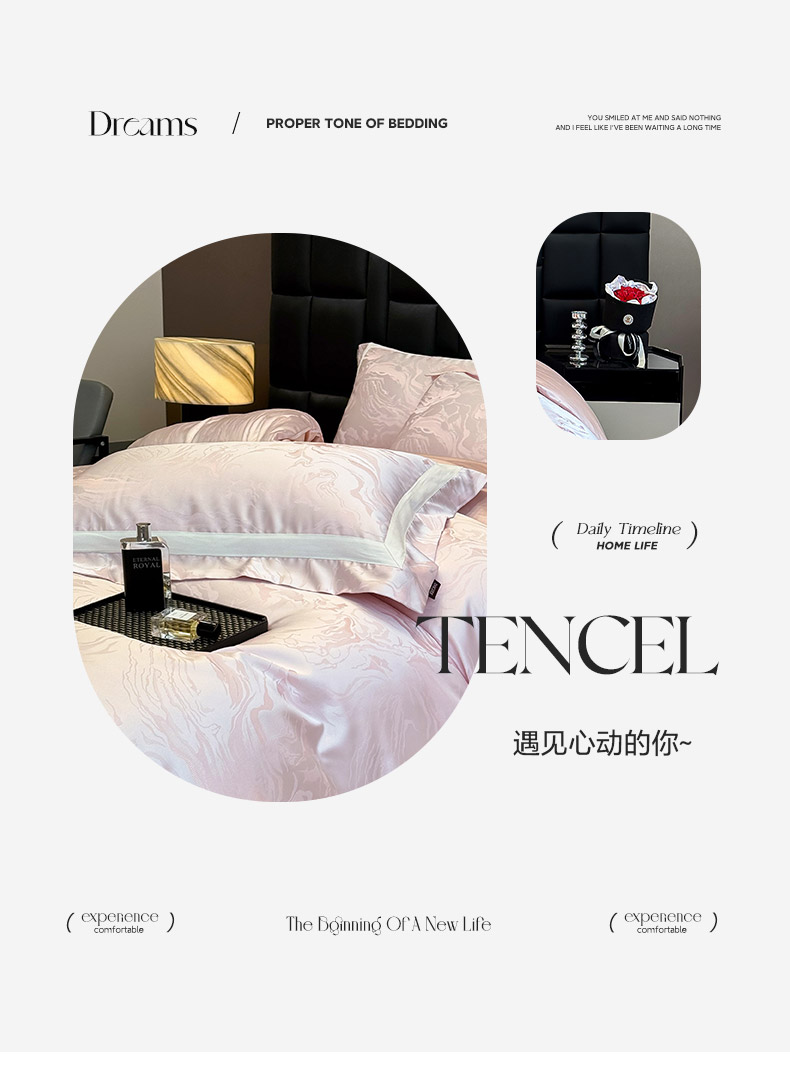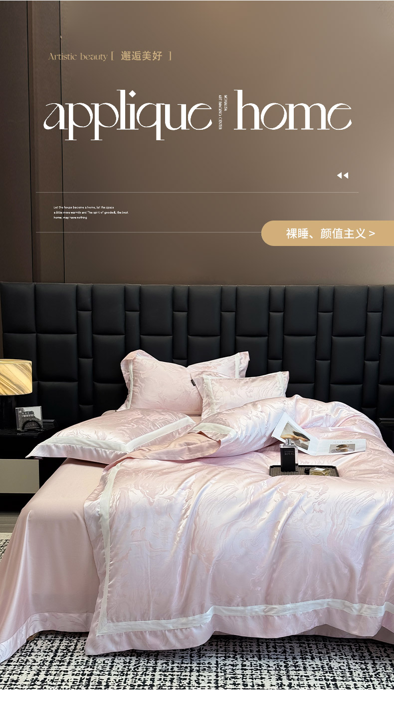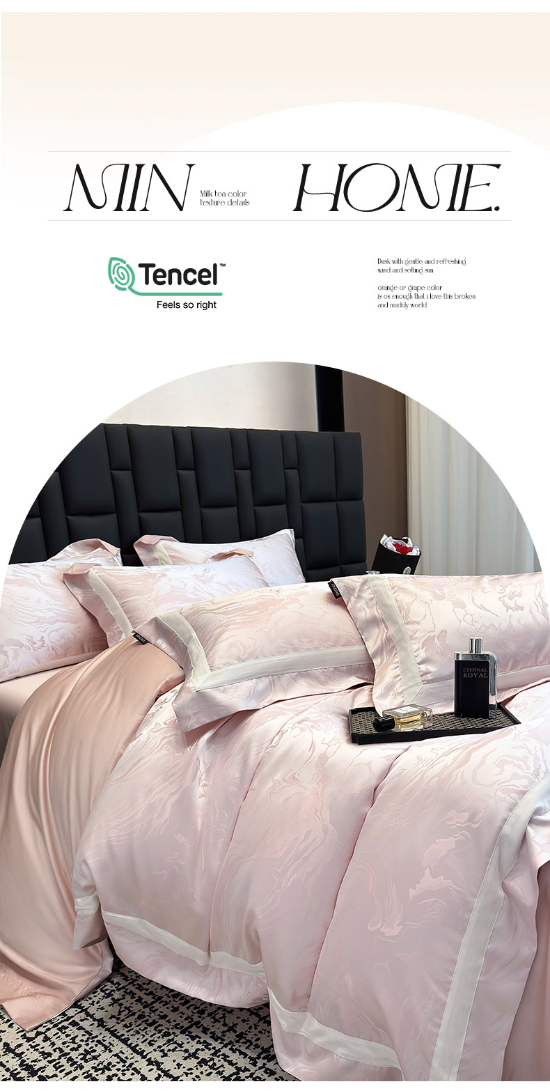 商品名称:2025新品床上用品高端A类100支天丝棉贡缎提花四件套全棉纯棉长绒棉夏季轻奢真丝全工艺 南溪-伊莎粉